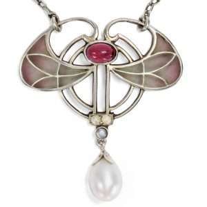 Besonders hervorzuheben ist die Schließe der Kette, die in Form einer stilisierten Blüte im modernen Stil der 1970er-Jahre gestaltet wurde. Eine weitere Perle bildet den Mittelpunkt dieser Blüte.