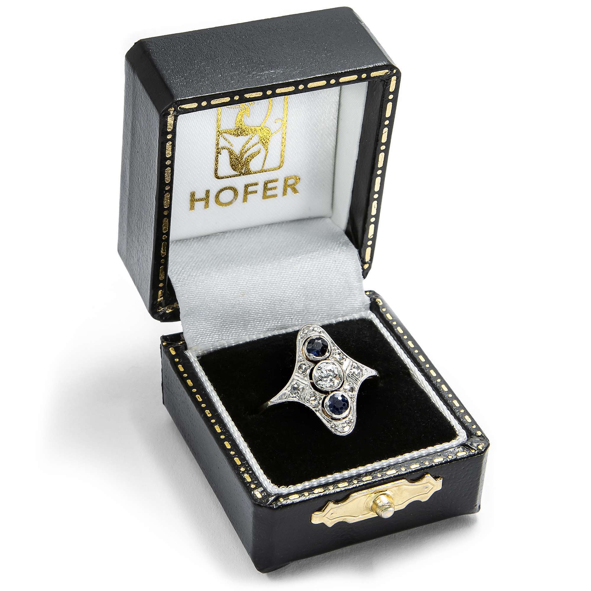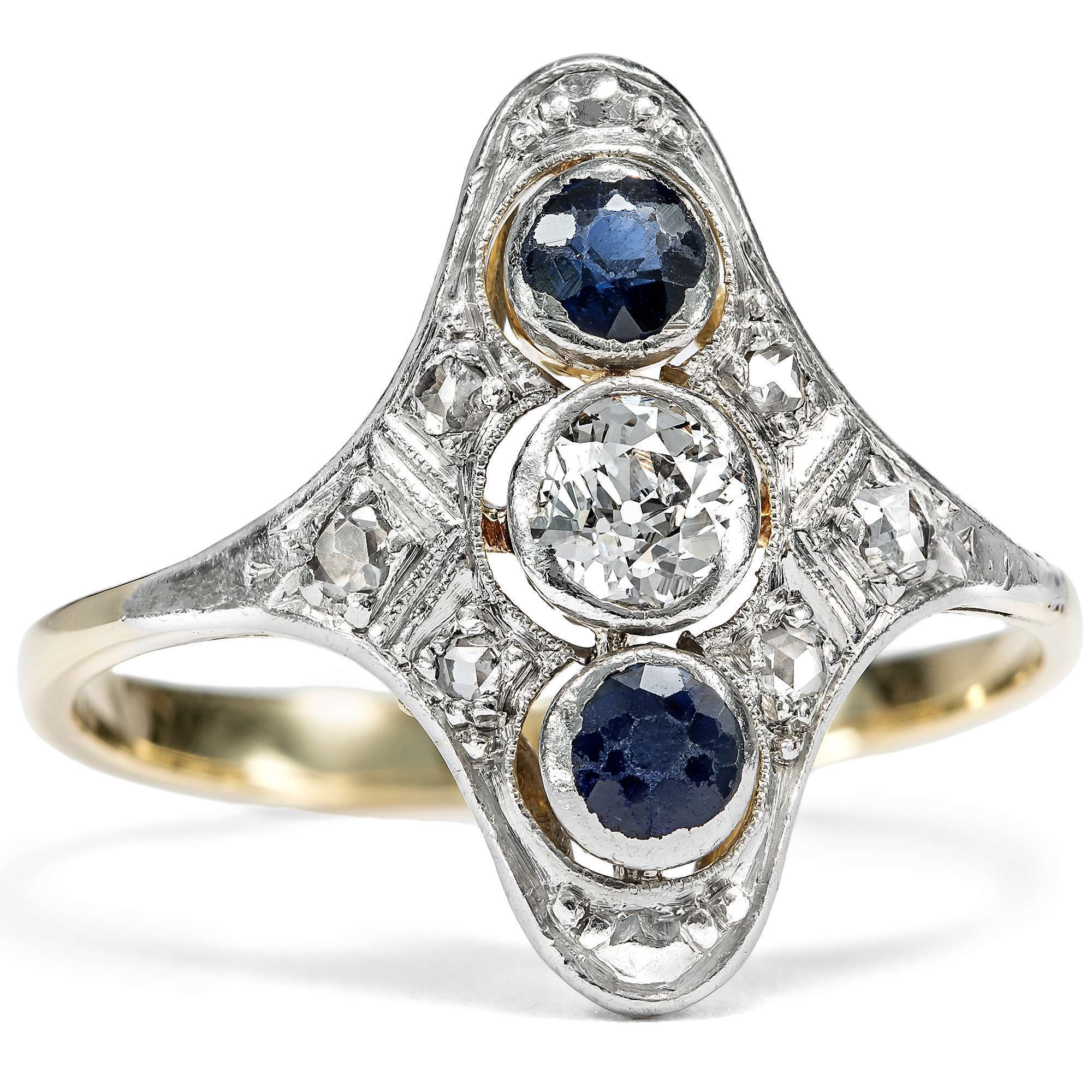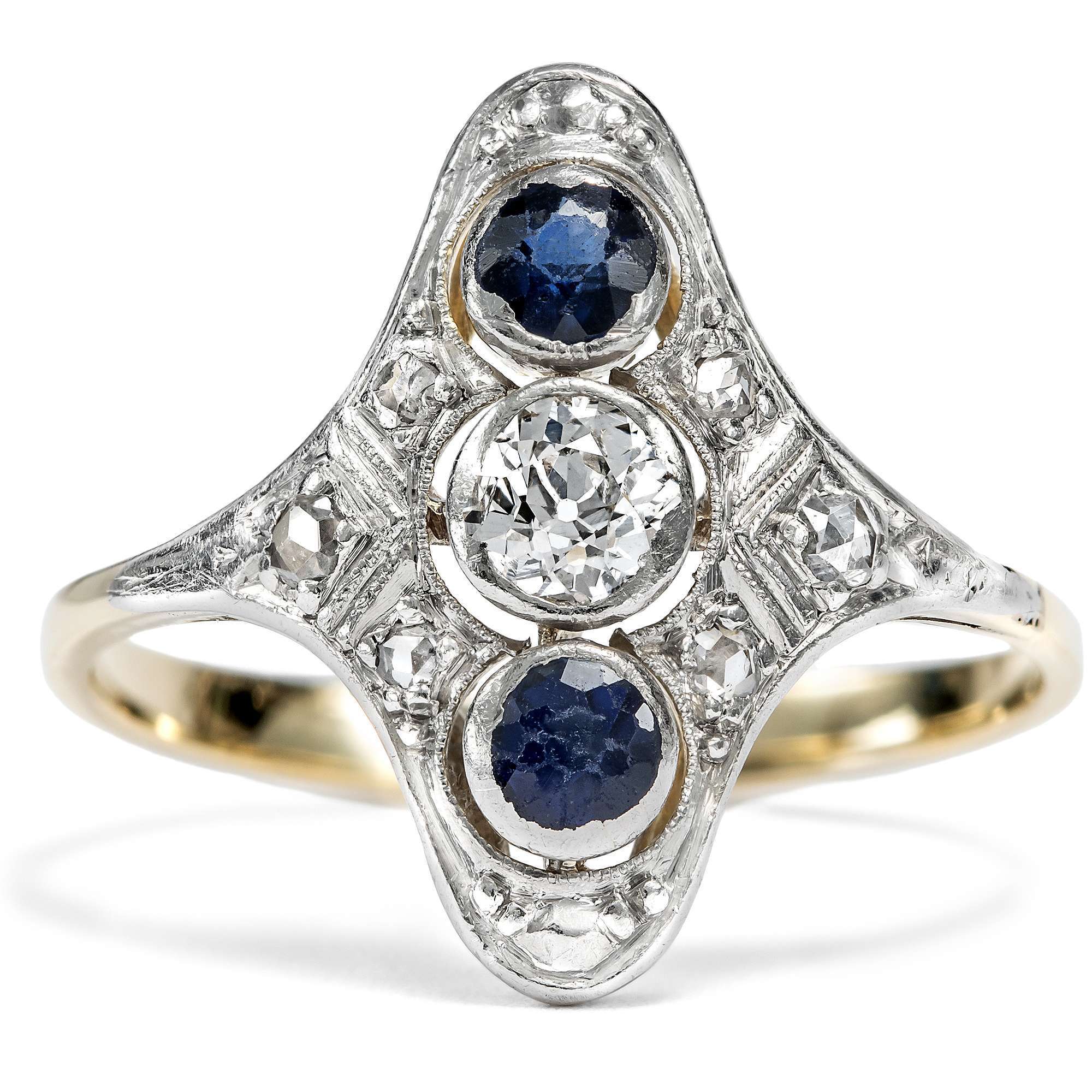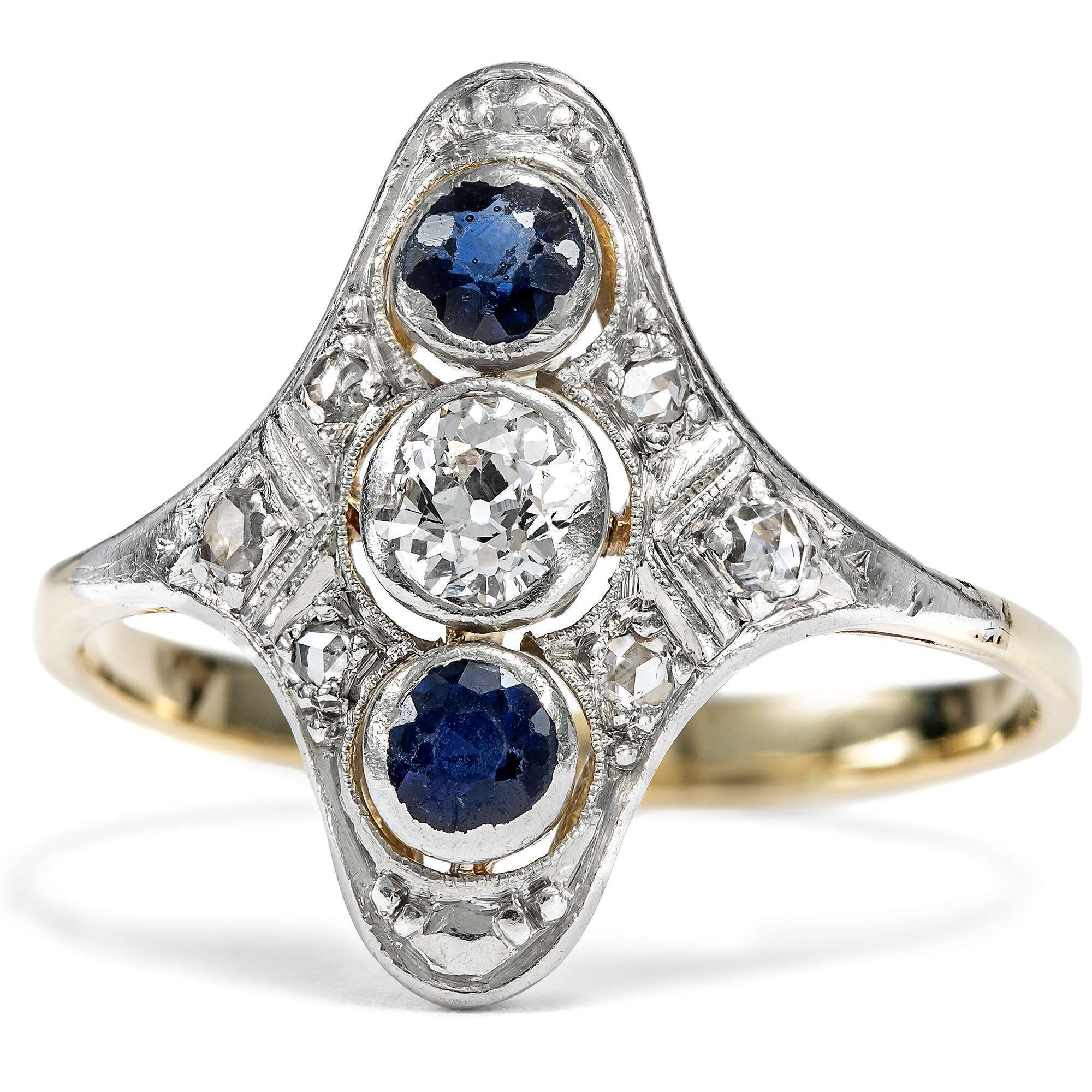 Klassischer Art Déco Ring mit Saphiren & Diamanten, Deutschland um 1925
