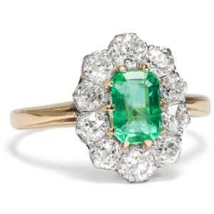 | Stempelungen: | Im Innern der Ringschiene die Werkstattmarke „DSJ“ in Ligatur, zudem die Feingehaltsstempel „585“ und „900“ |