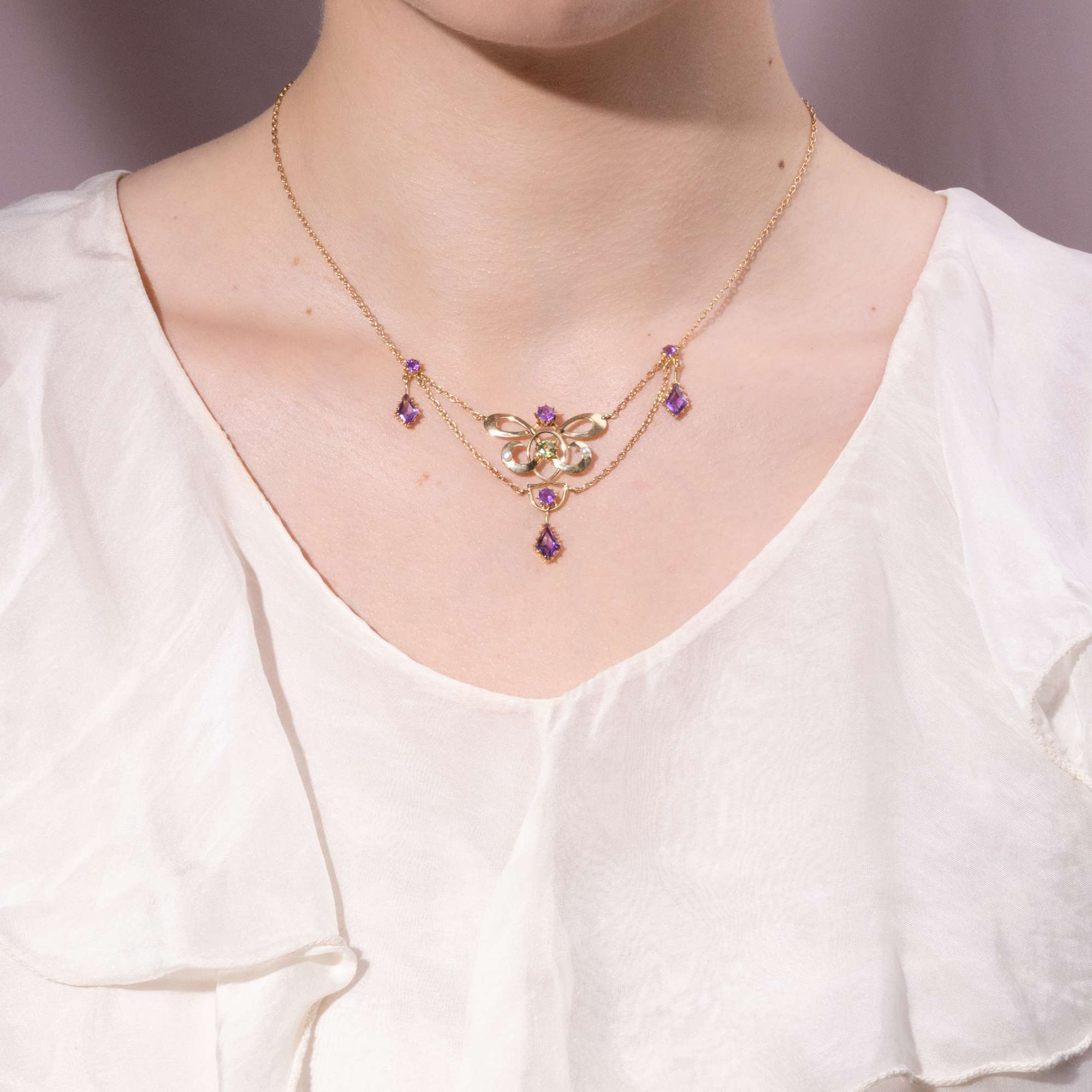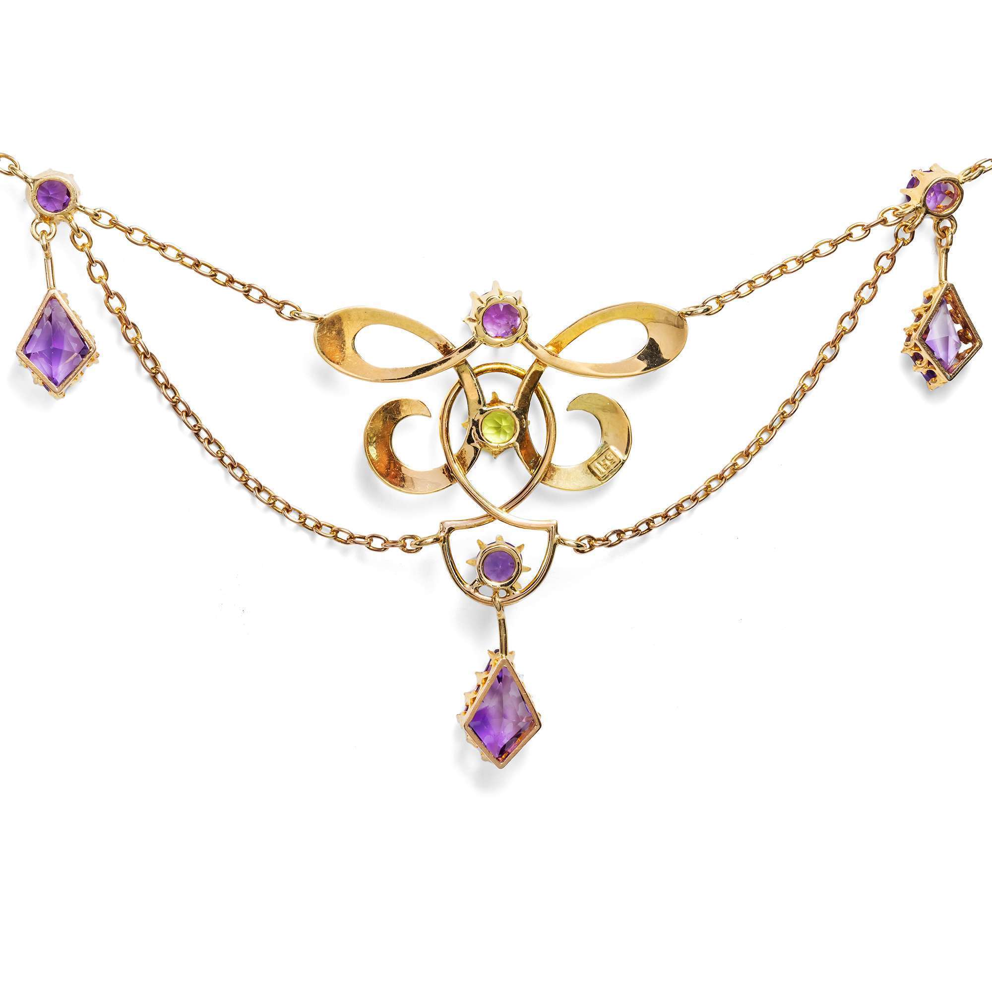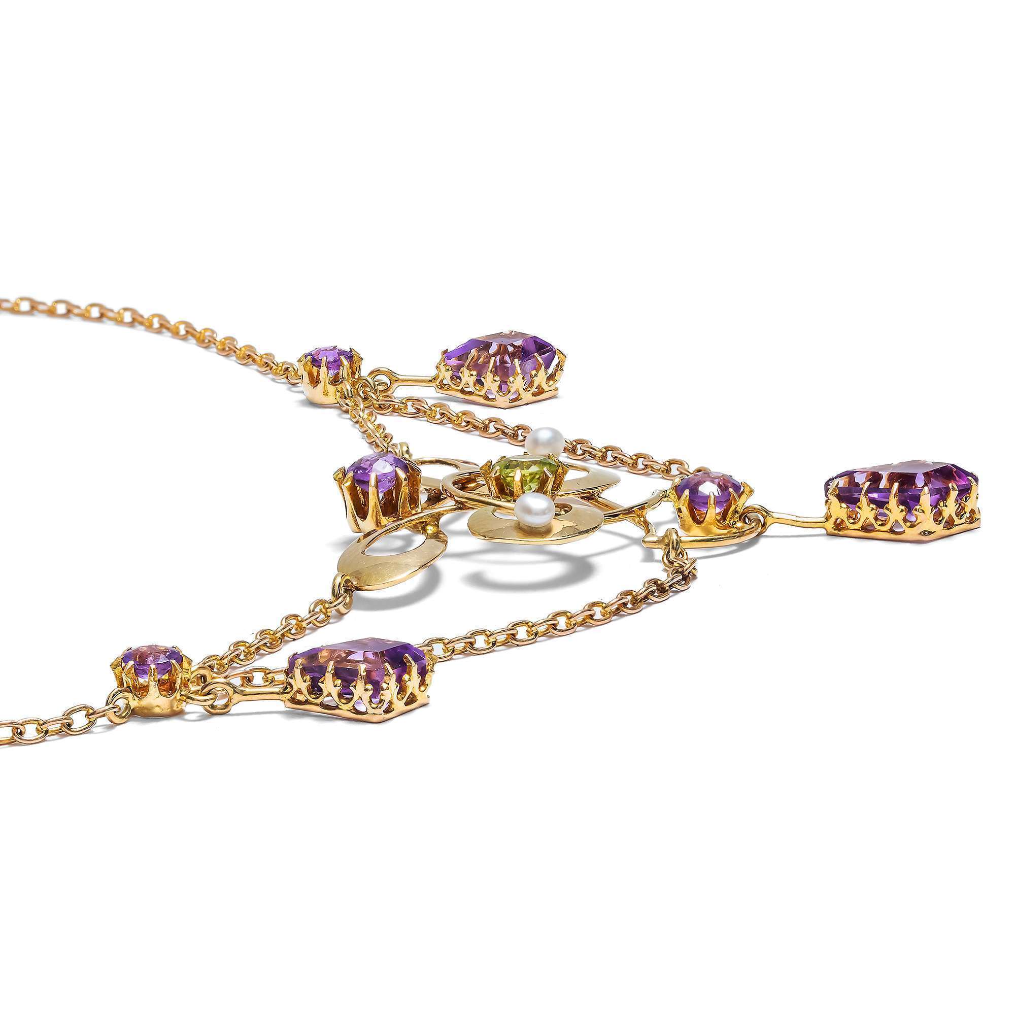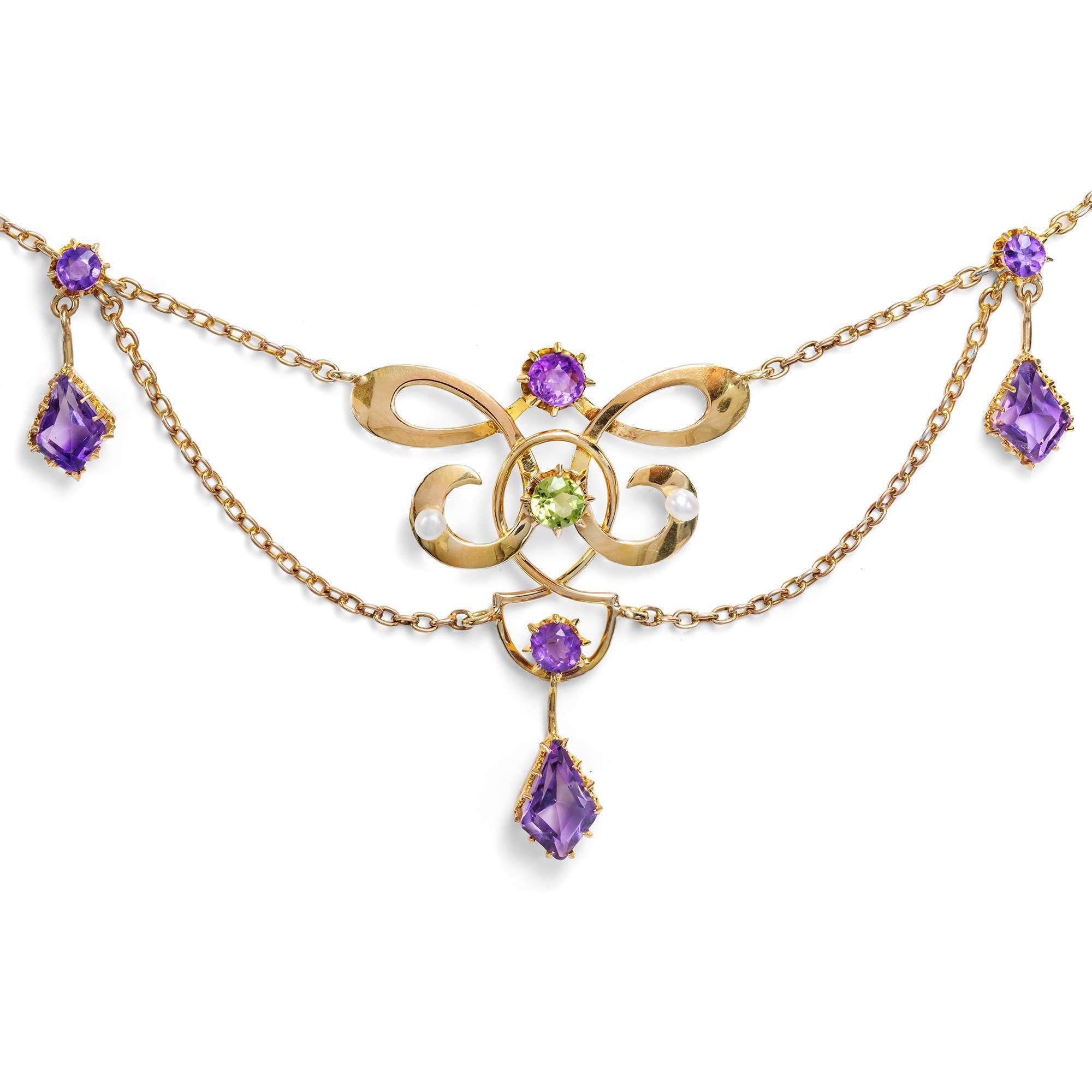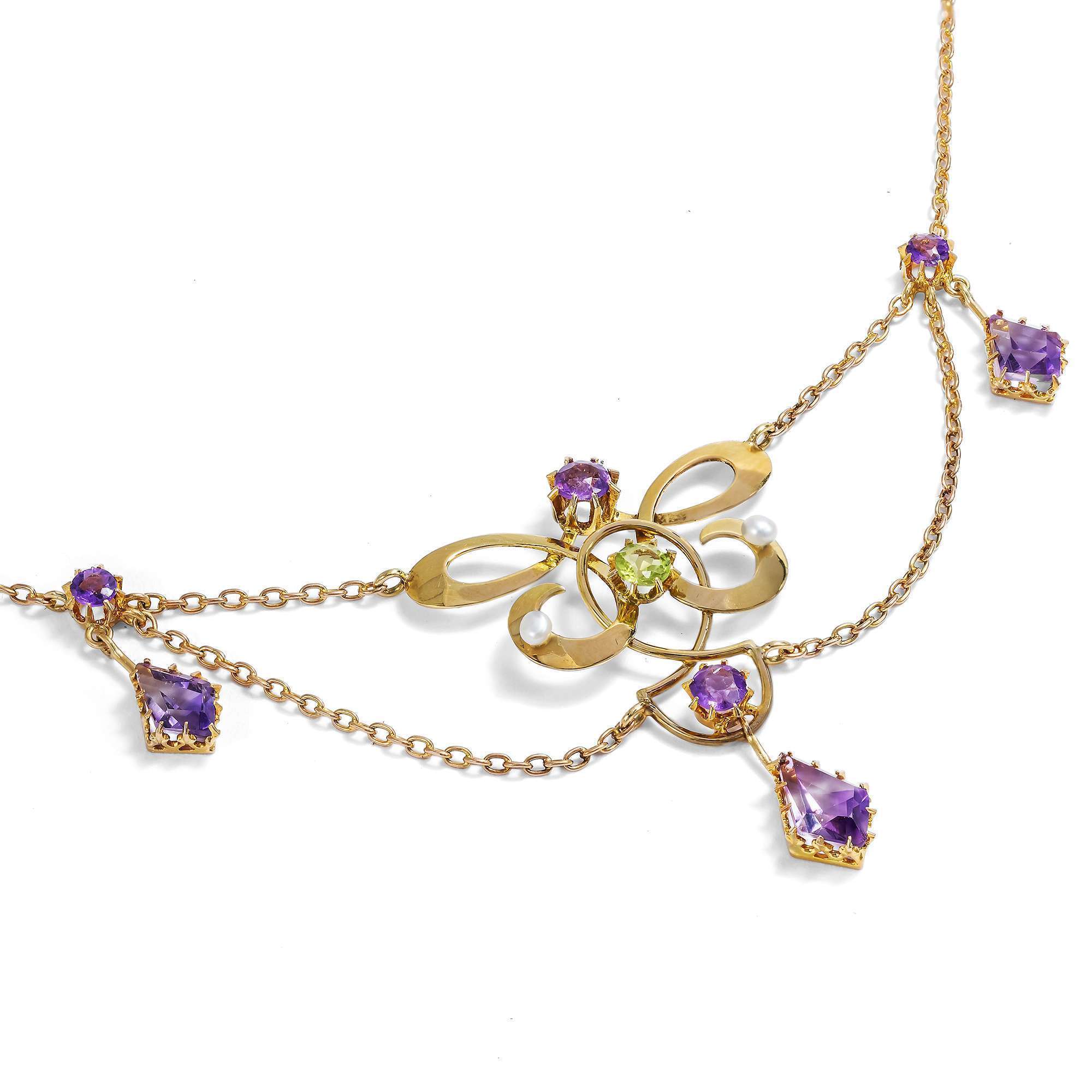 Prachtvolles Collier der Suffragetten mit Amethyst, Peridot & Perlen, England um 1910