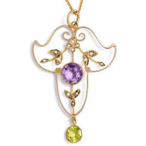 Möglicherweise handelt es sich bei den Pflanzen im Haar der Dargestellten um von oben gesehene Mohnknospen, denn auch Nyx, die Personifikation der Nacht, war ein populäres Motiv. Dargestellt wurde sie mit Schlafmohn im Haar und leicht gesenktem Blick. Meist sind ihr jedoch noch ein Sichelmond und eine Eule zur Seite gestellt – ganz wird die schöne Fremde ihr Geheimnis also nicht preisgeben. Doch wie für Geheimnisse ist der Anhänger auch gemacht, denn auf seiner Rückseite befindet sich ein verglastes Medaillonfach, in dem ein Andenken versteckt, doch sprichwörtlich nahe am Herzen getragen werden kann.