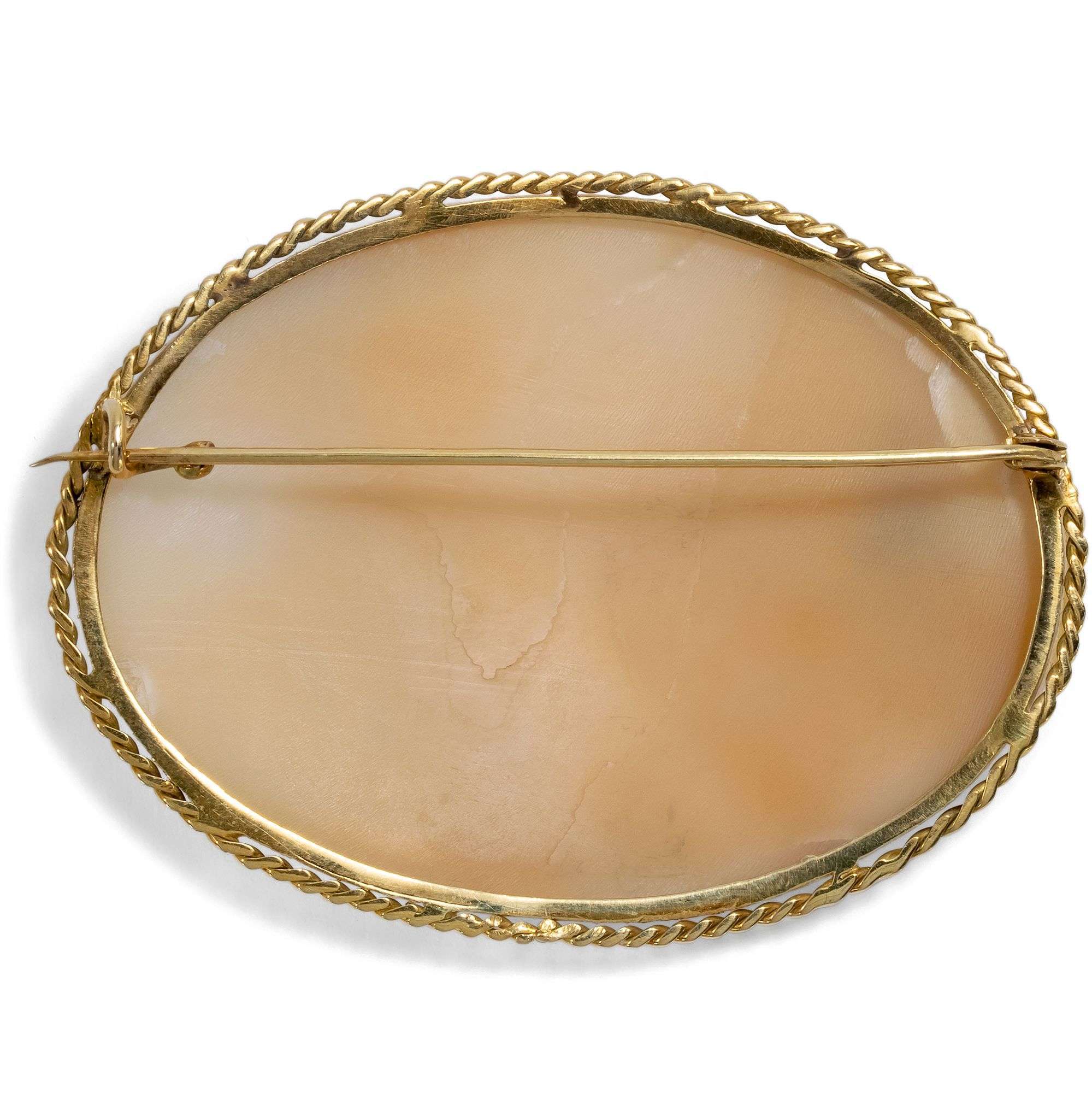 | Material: | Eine Kamee aus Muschelschale, ca. 37,0 x 50,0 mm Gold 585/000, entspricht 14 Karat |