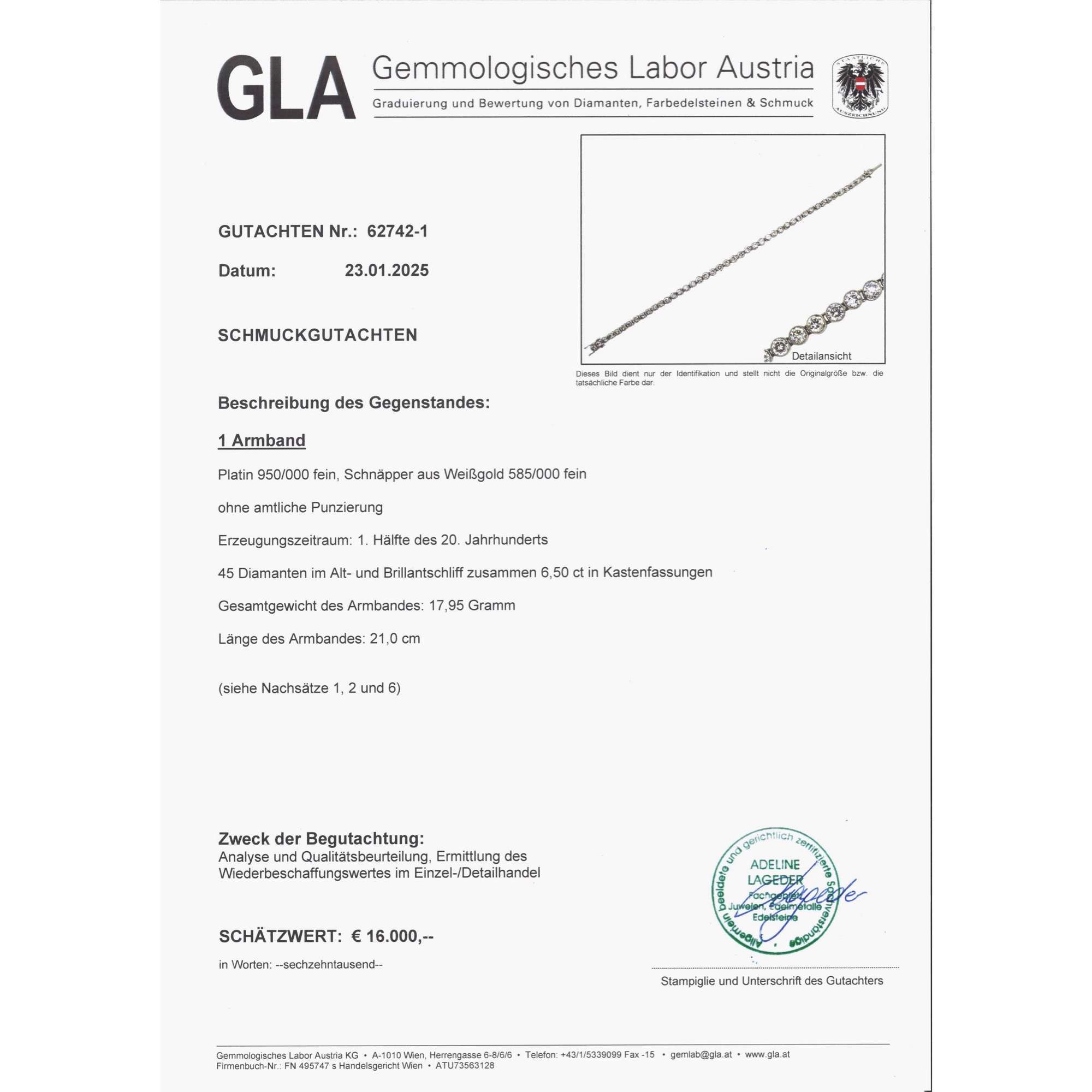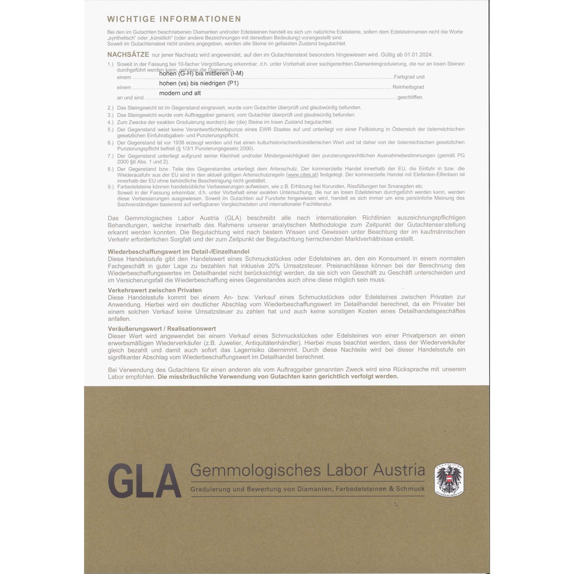 | Zertifikat: | Lieferung mit einem detaillierten Gutachten des Gemmologischen Labors Austria, Wien, vom 23. Januar 2025. Festgestellter Wiederbeschaffungswert: 16.000,- Euro |