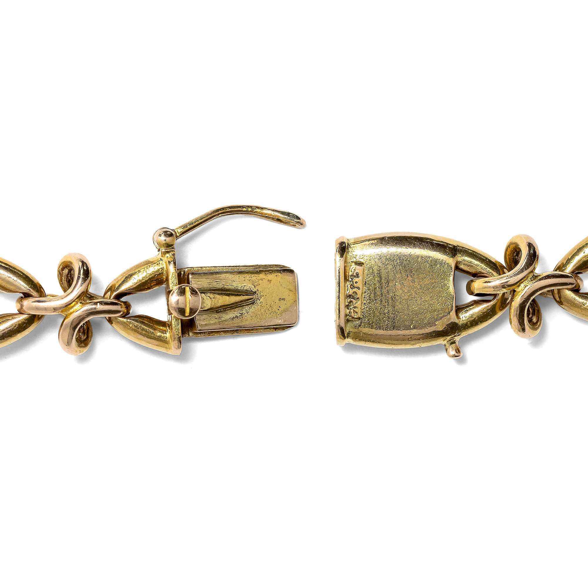 Fließende Goldarmbänder aus ornamentalen Gliedern erfreuten sich zur Zeit der vorletzten Jahrhundertwende großer Beliebtheit. Wie viele andere Innovationen im Bereich des Schmucks befriedigten sie das Bedürfnis nach weicheren und anschmiegsameren Formen, nach dem als oft zu starr und sperrig empfundenen Schmuck der Generation zuvor.