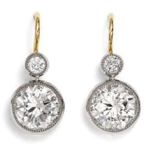 Jeder der Ohrringe besteht aus drei Teilen, einem Ober- und einem Unterteil in Tropfenform sowie einem beweglichen Verbindungsstück, dass den Ohrringen eine schöne pendelnde Bewegung ermöglicht. Die Edelsteine sind dabei in hochkarätiges Weißgold gefasst, das den Glanz der Diamanten und Smaragde alle Möglichkeiten gibt, sich unverfälscht zu entfalten.