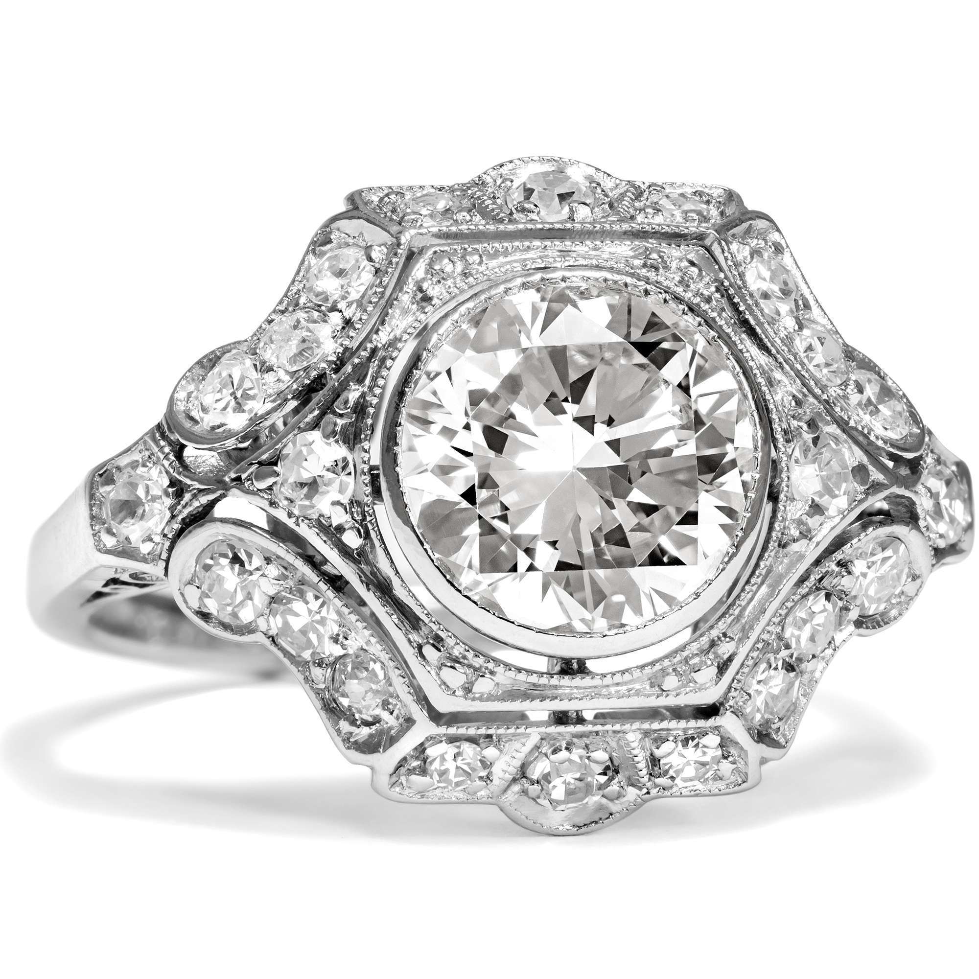 Zeitloser Art Déco Platinring mit 1,50 ct Altschliff-Diamant, Alfons Grupp, um 1937