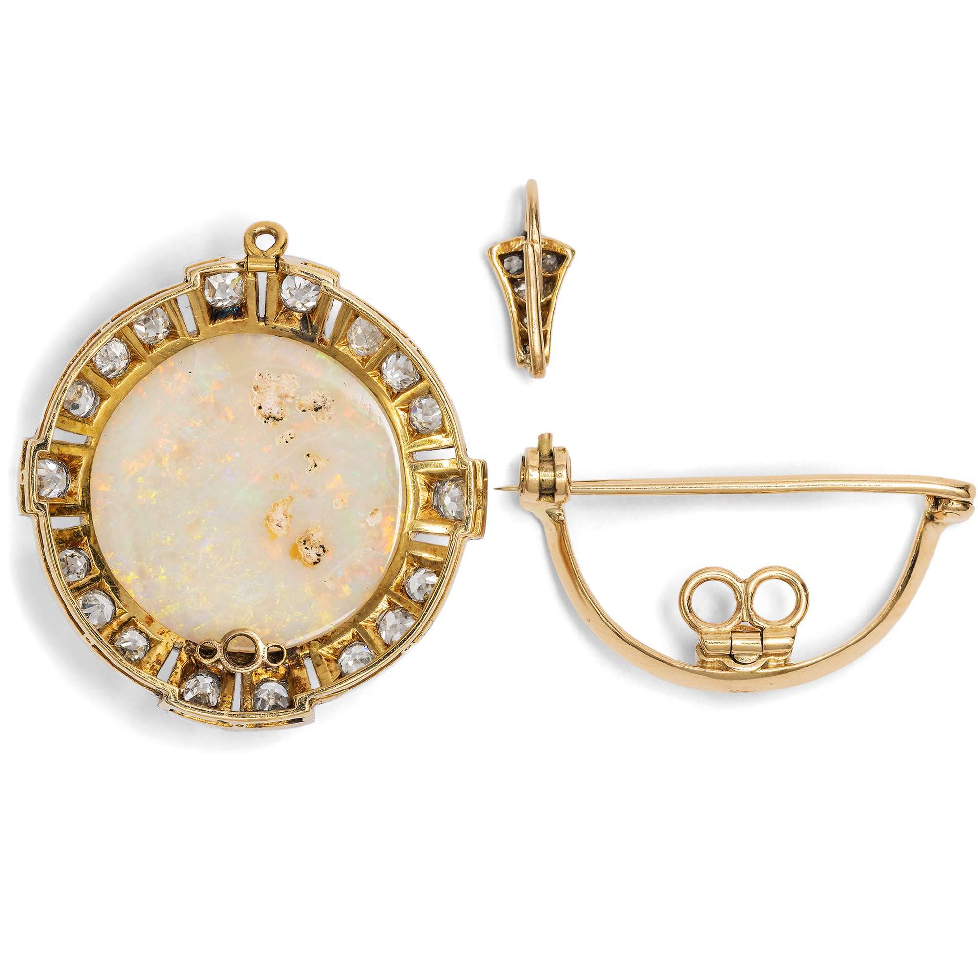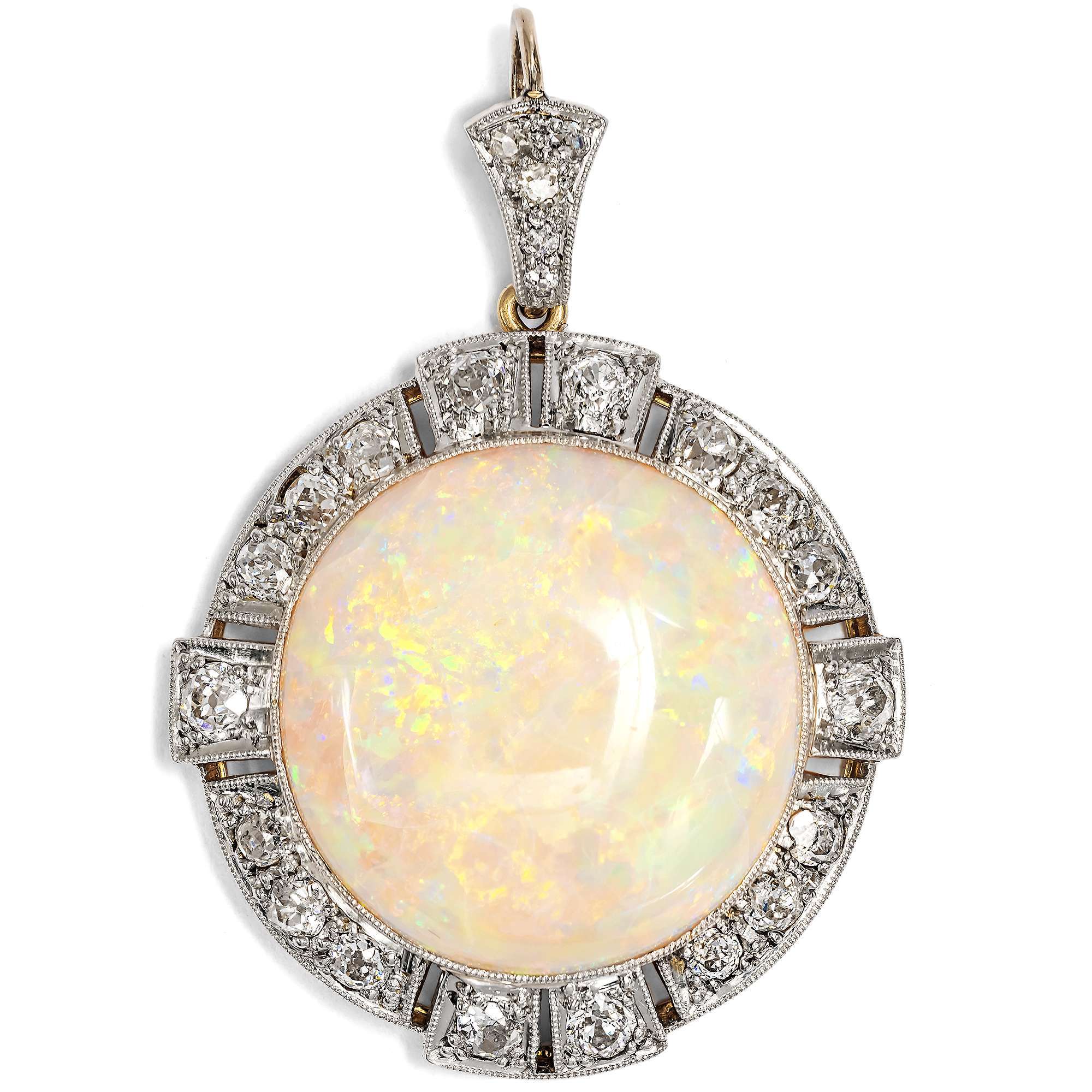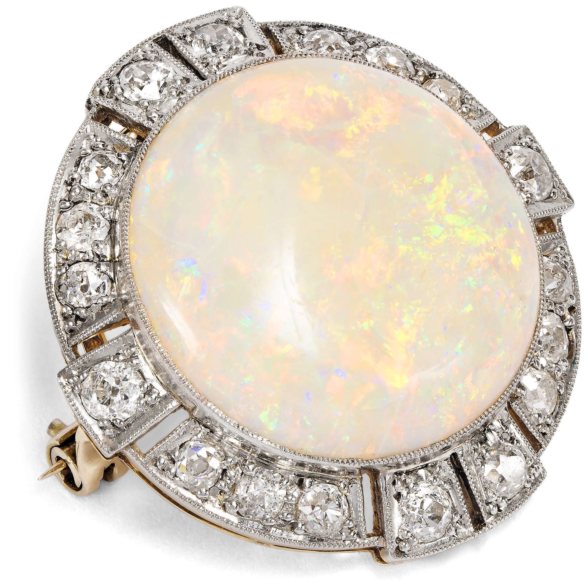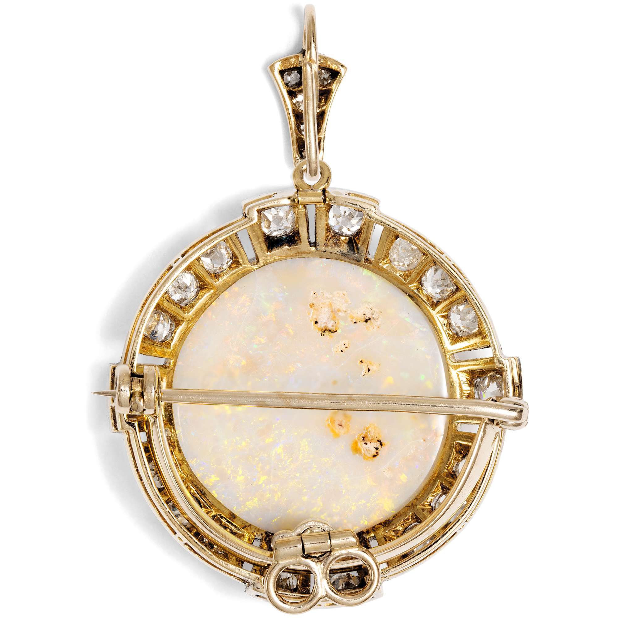 Prachtvolle Anhänger-Brosche mit Opal & Diamanten in Platin, um 1920