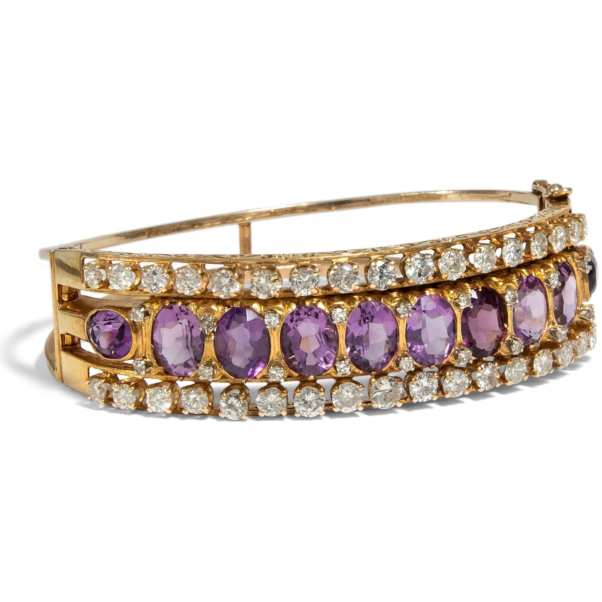 Kostbarer vintage Armreif mit Amethysten & Diamanten, um 1970