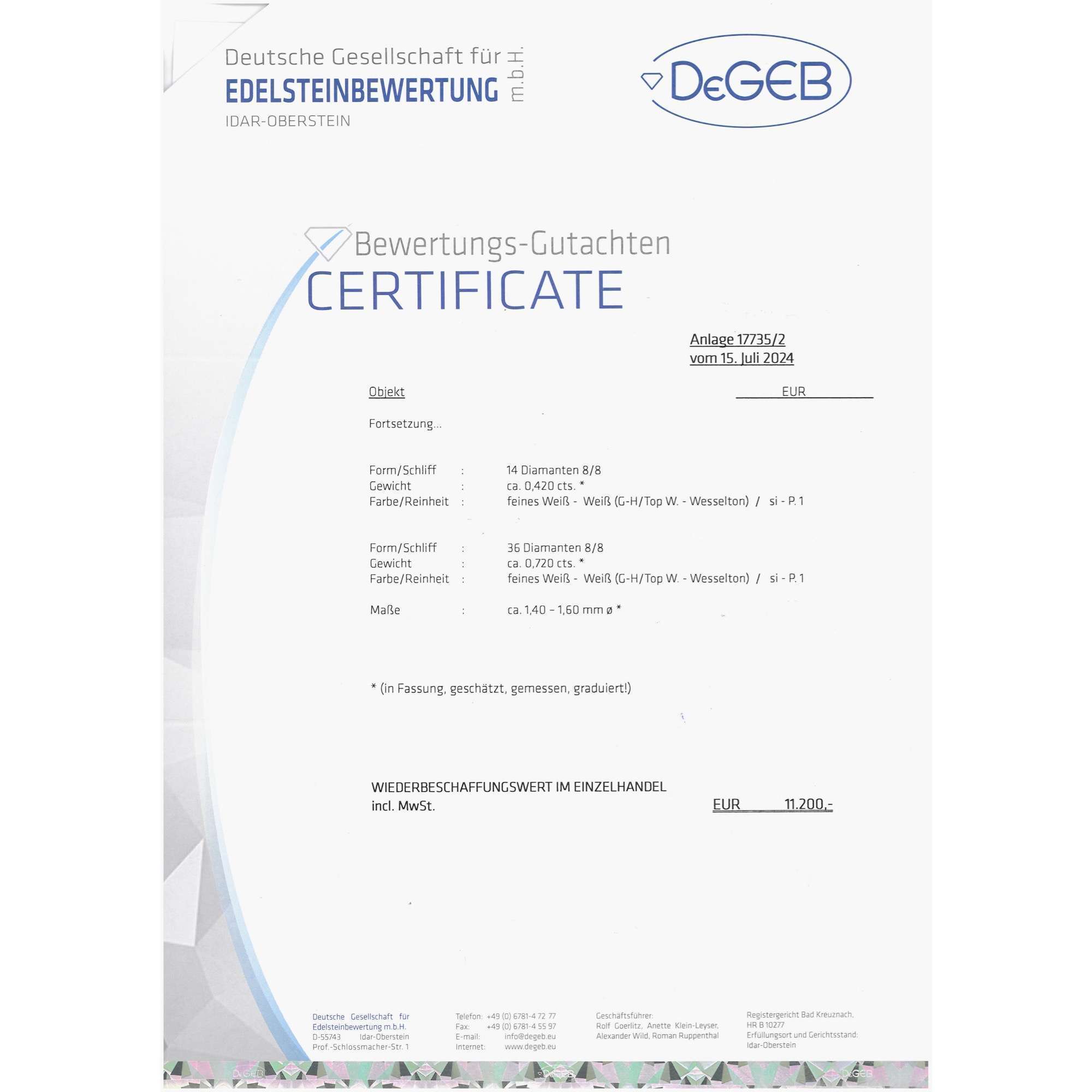 Zertifikat: Lieferung mit einem detaillierten Gutachten der Deutschen Gesellschaft für Edelsteinbewertung vom 15. Juli 2024. Festgestellter Wiederbeschaffungswert: 11.200,- Euro.