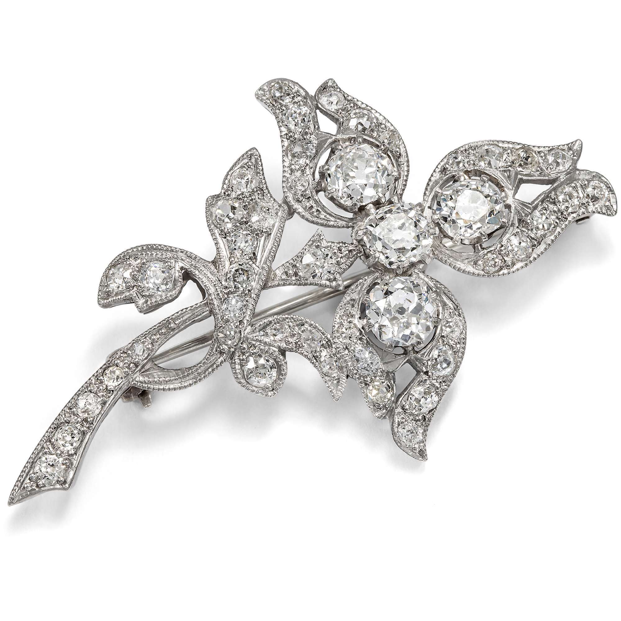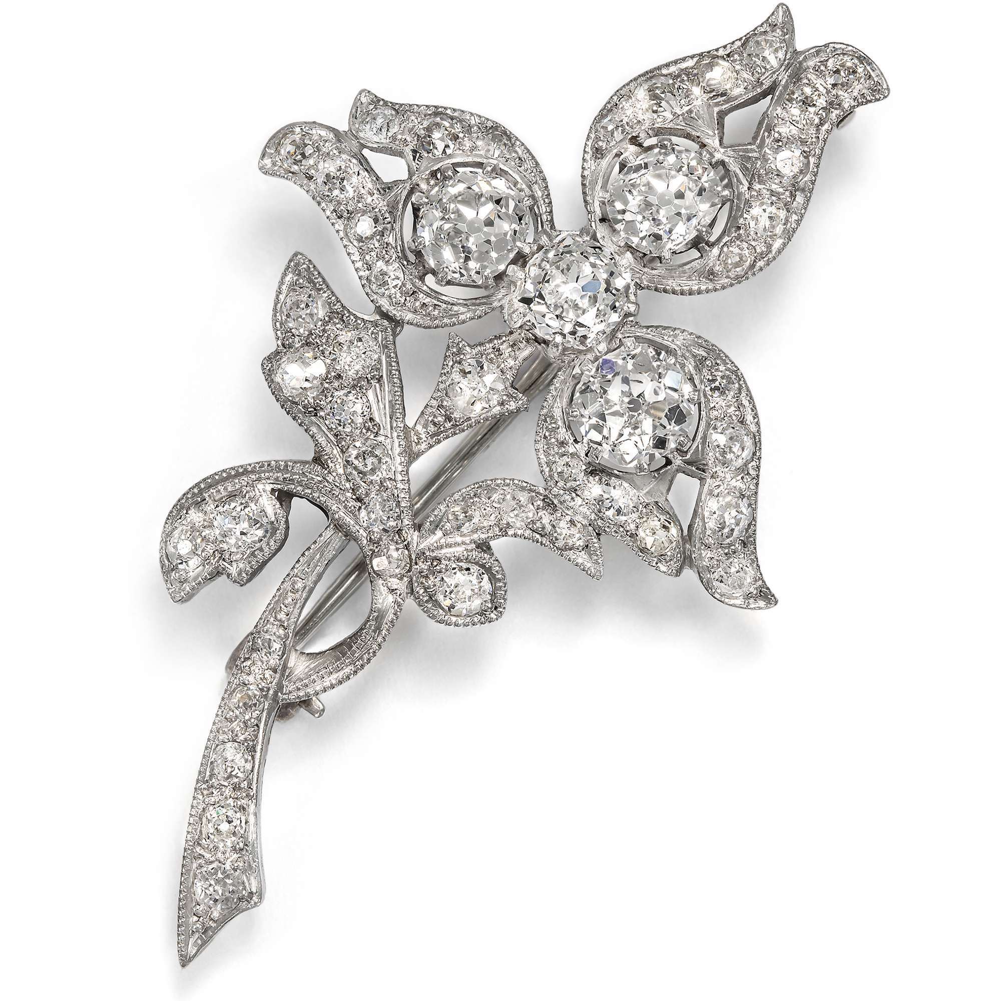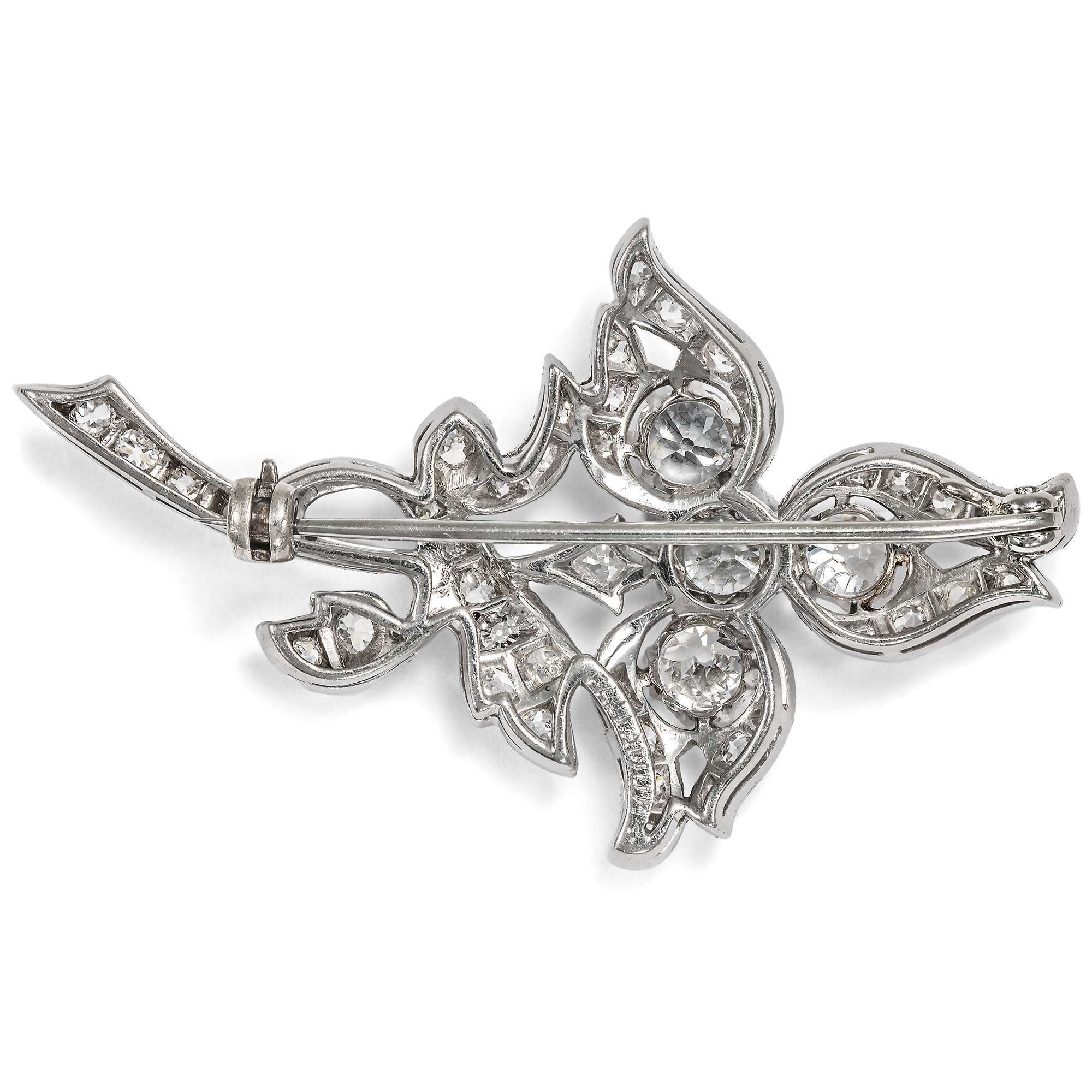 Florale Brosche mit Diamanten im Altschliff in Palladium, um 1940