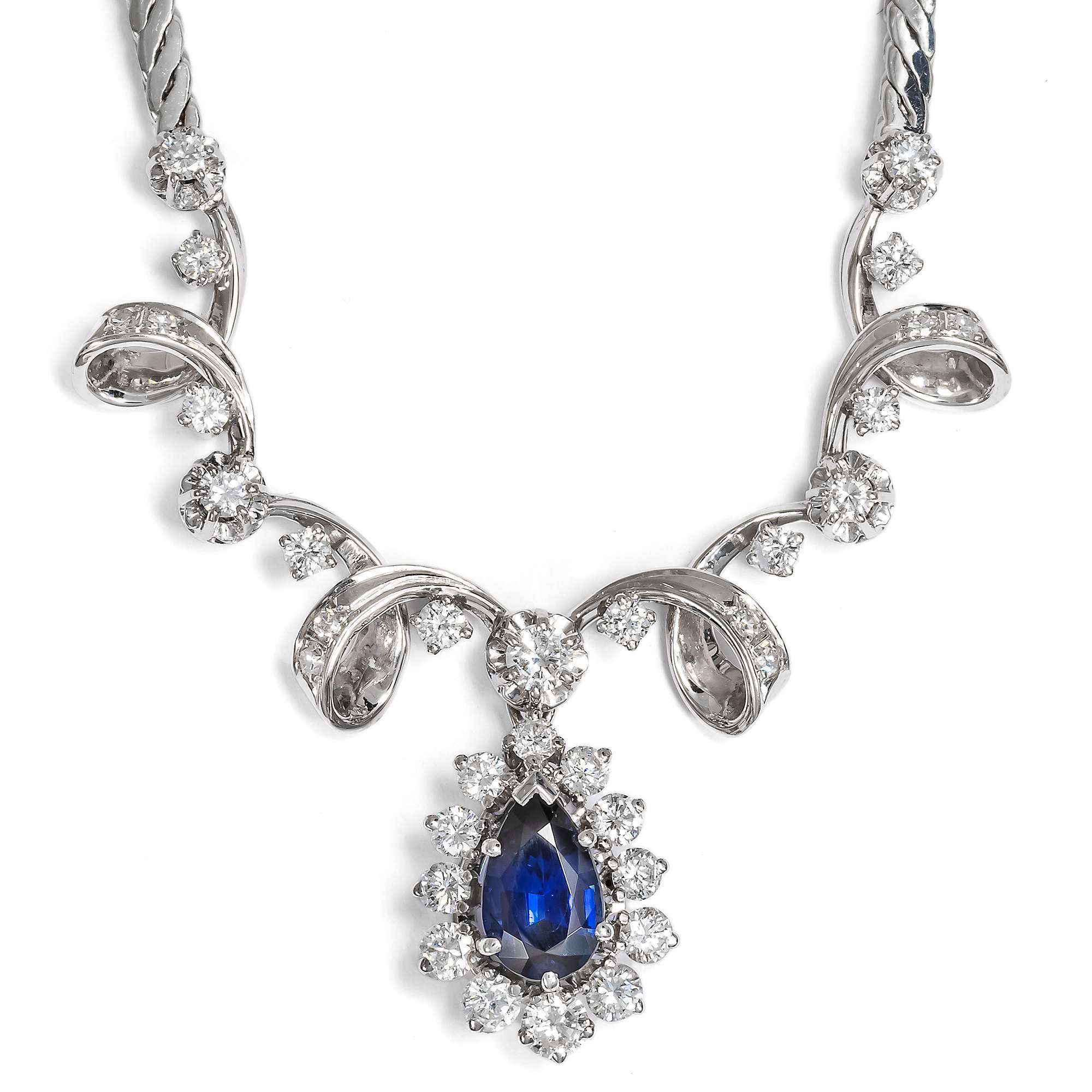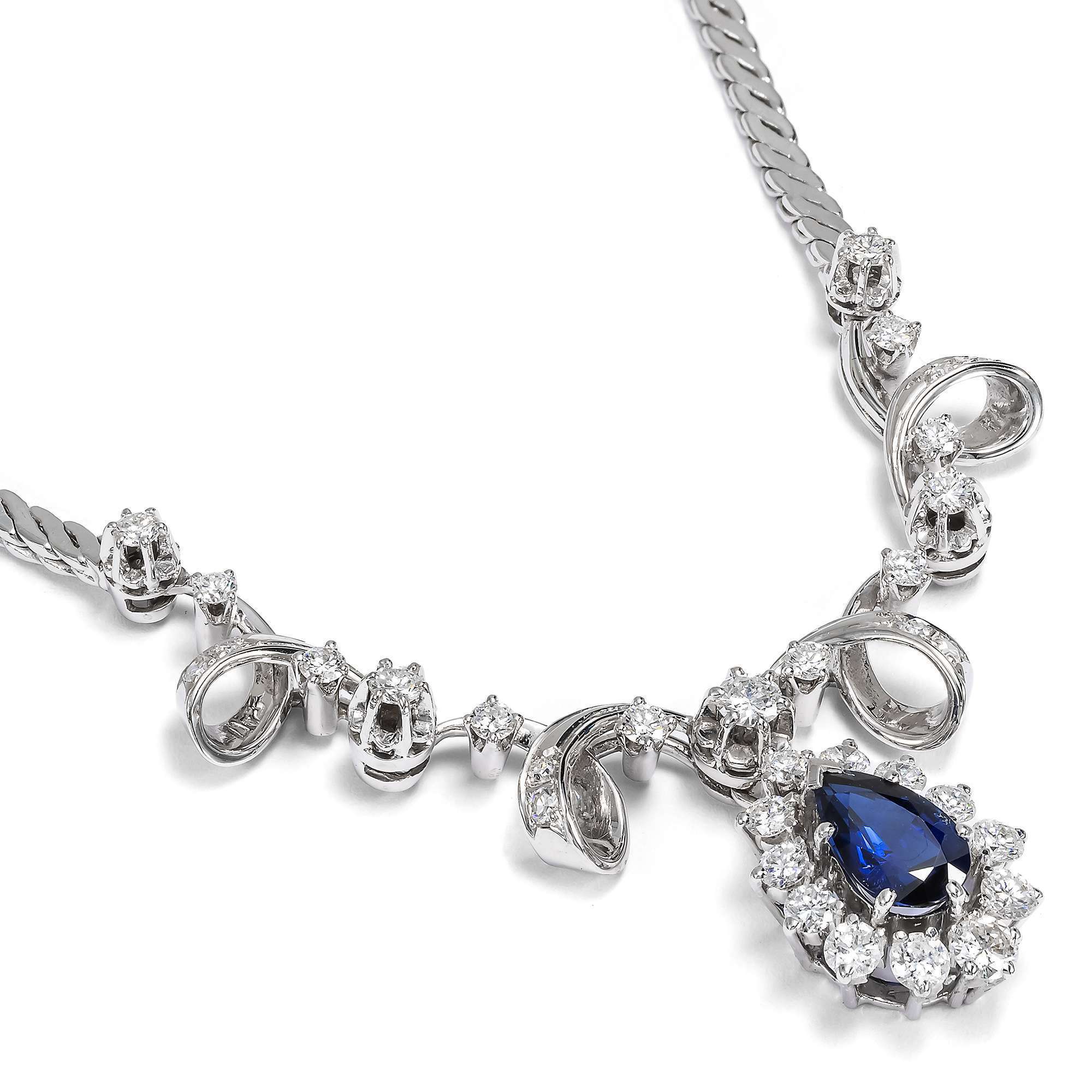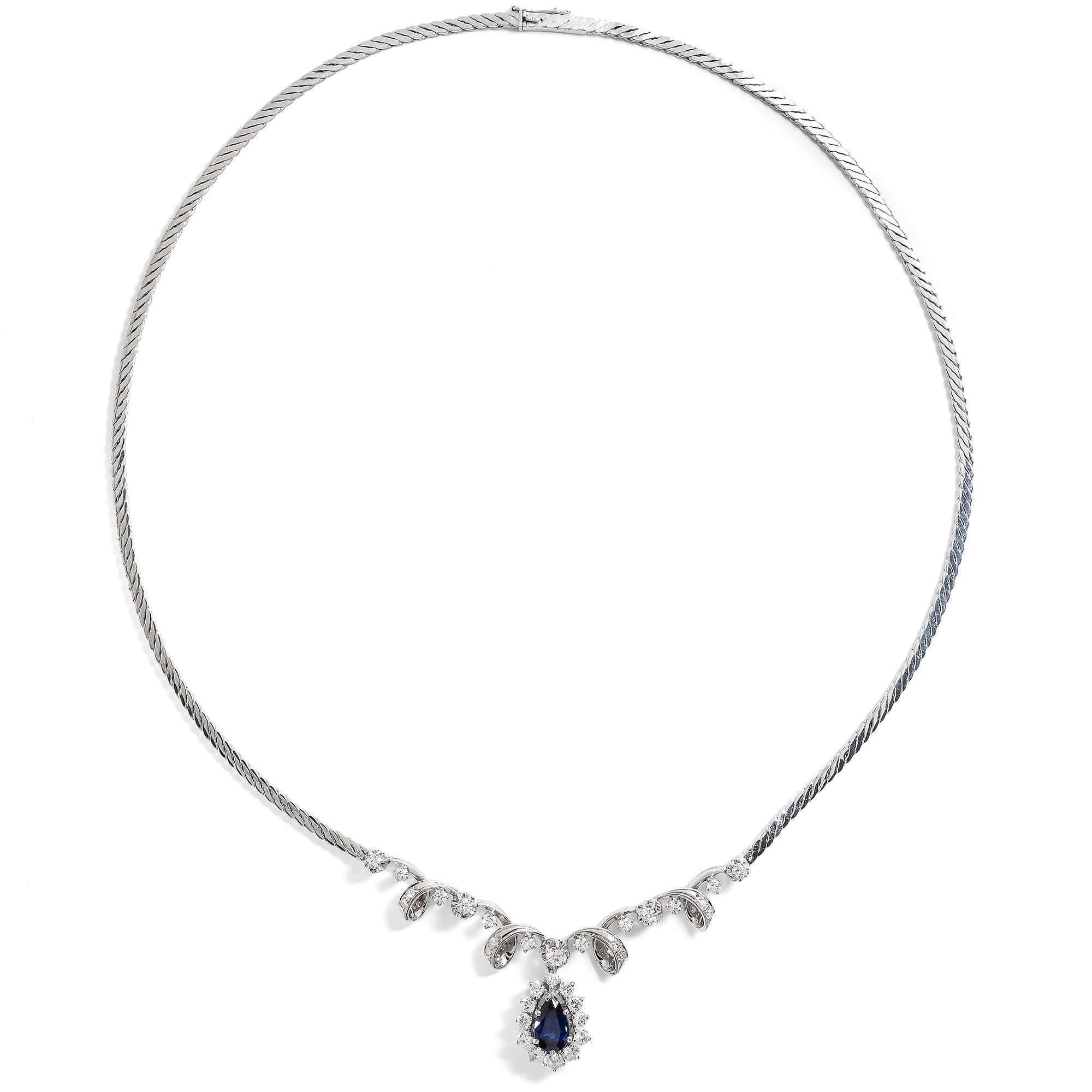 Hochwertiges Collier aus Weißgold mit Saphir & Brillanten, Deutschland um 1975