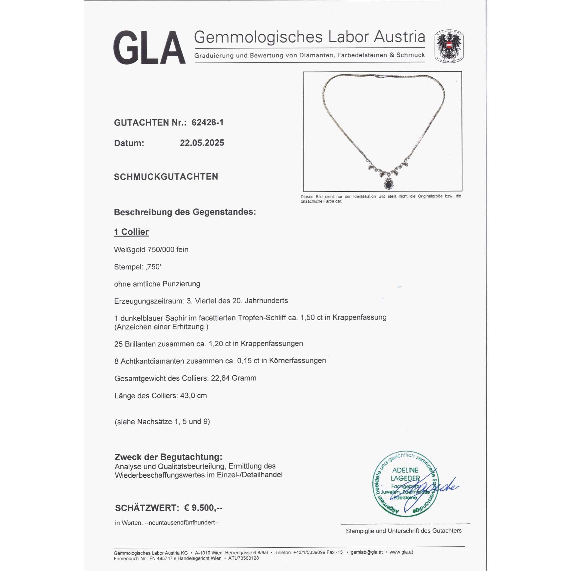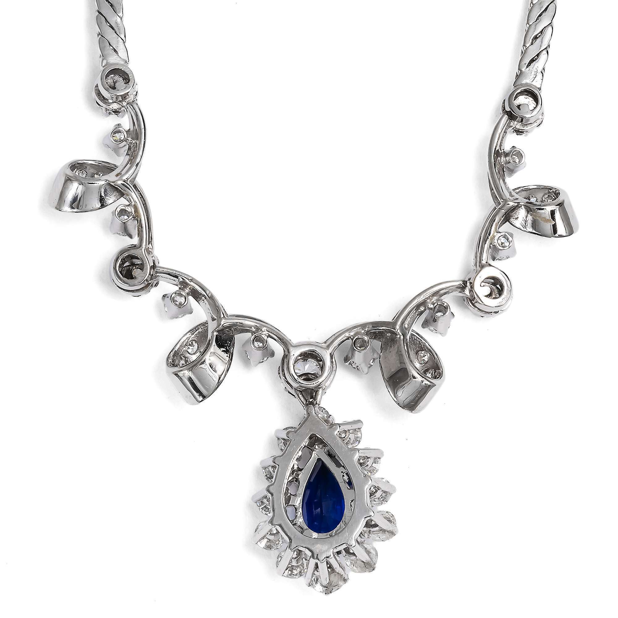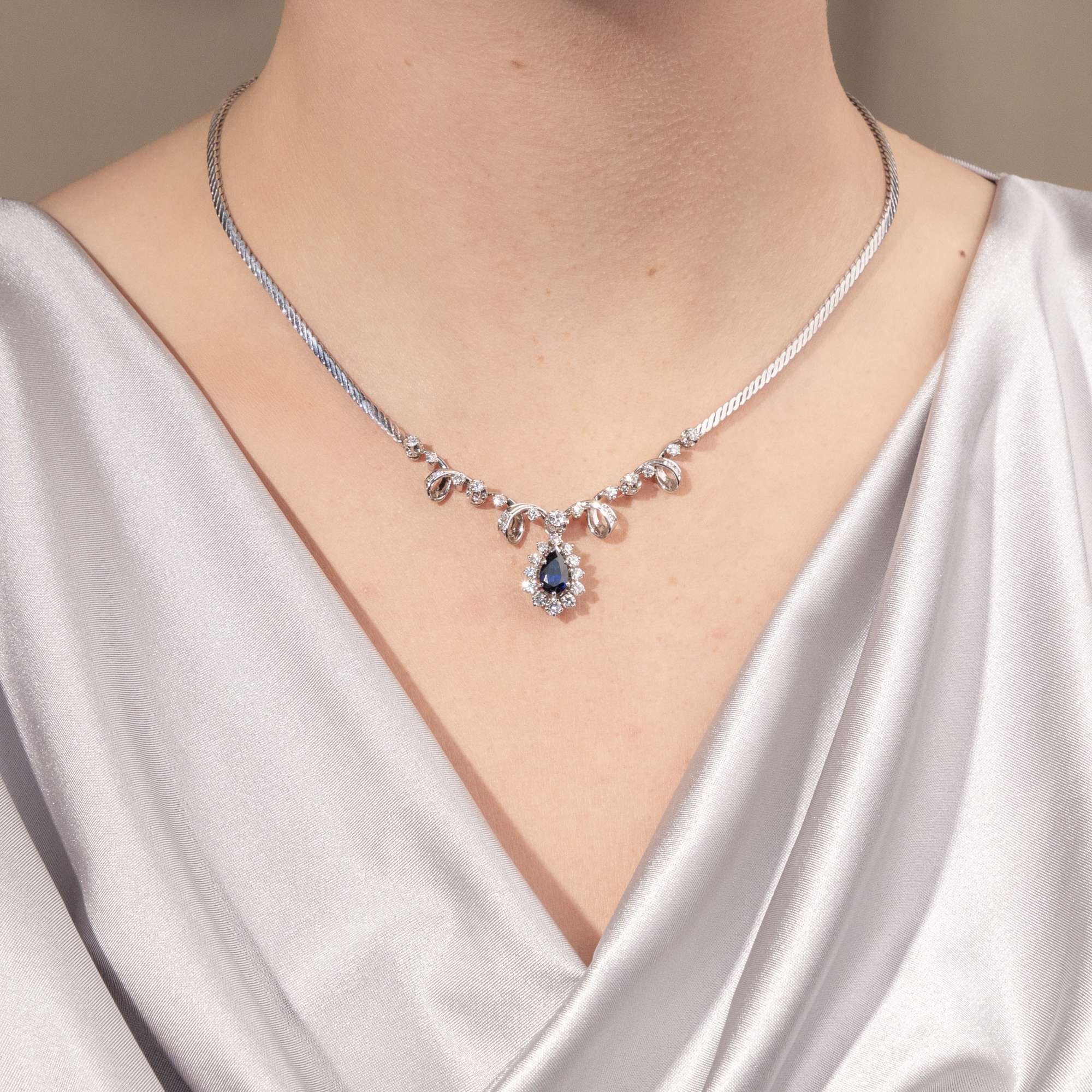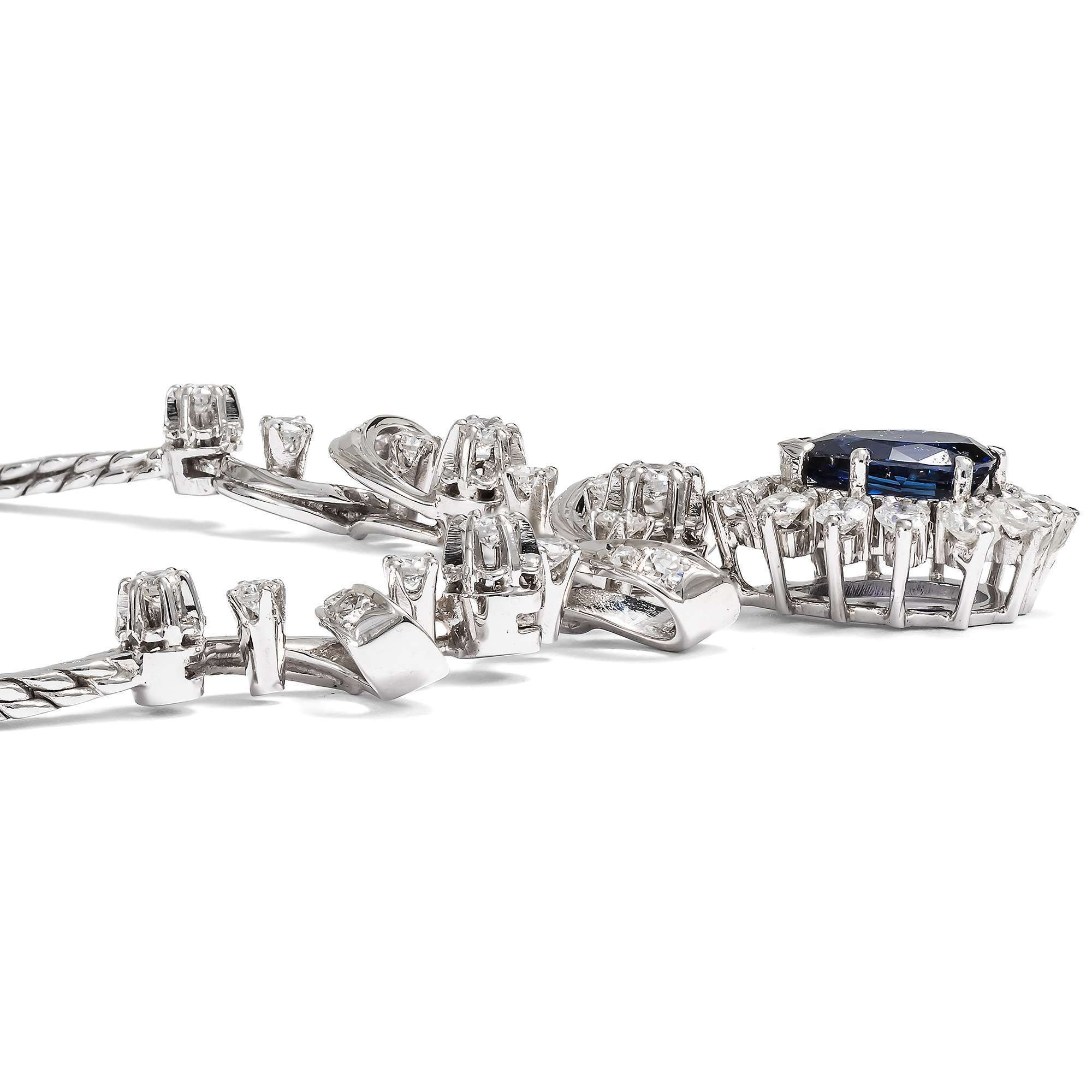 Hochwertiges Collier aus Weißgold mit Saphir & Brillanten, Deutschland um 1975