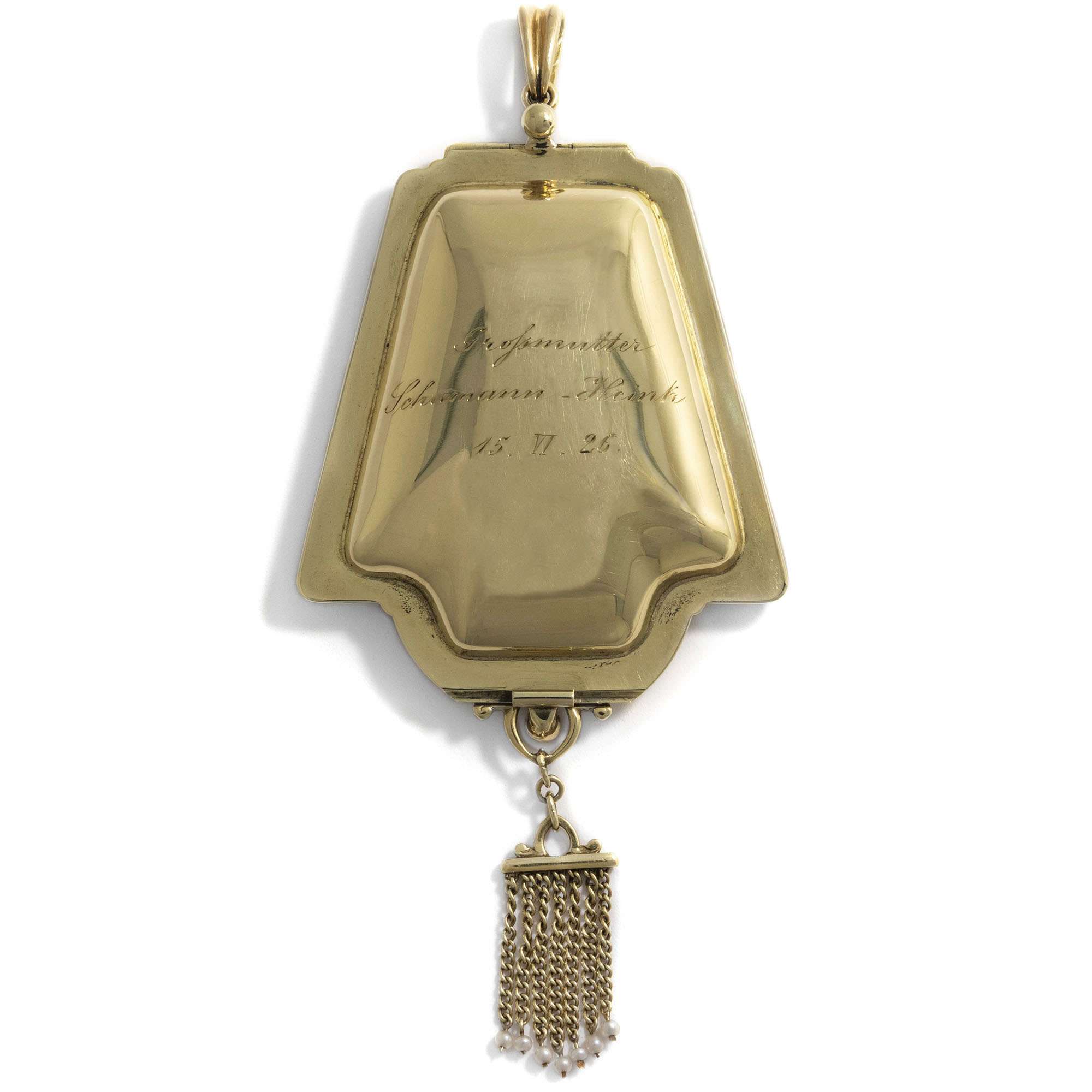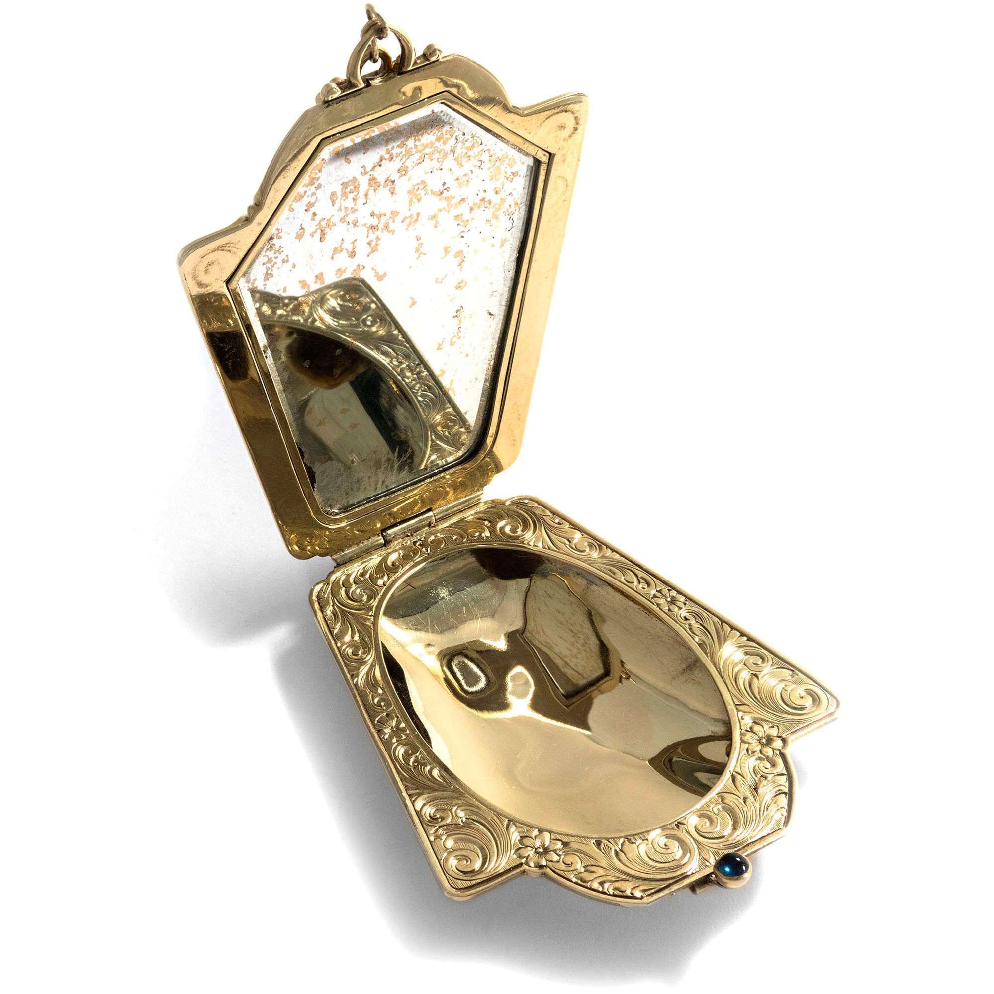 Großes goldenes Medaillon mit Spiegel als Anhänger, datiert 1926
