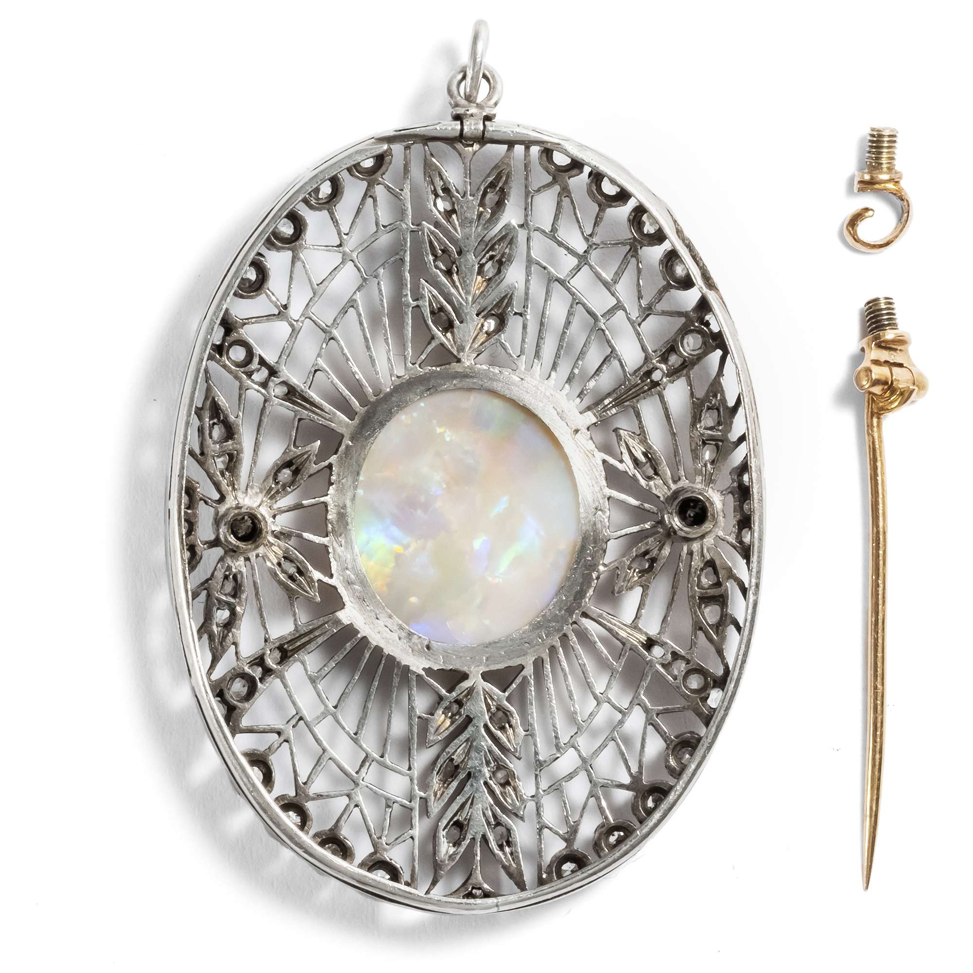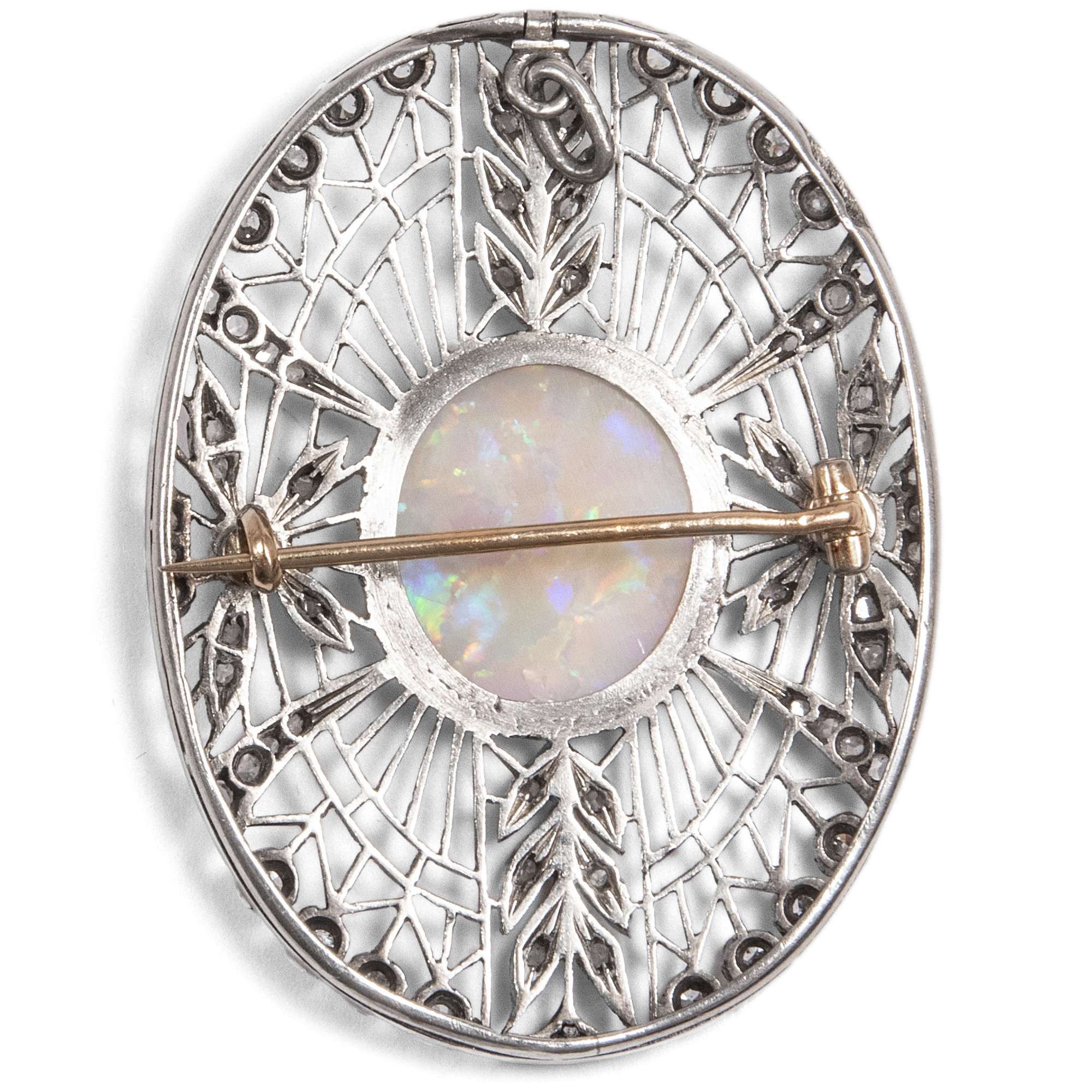 Große Anhänger-Brosche mit Opal & Diamanten, um 1910