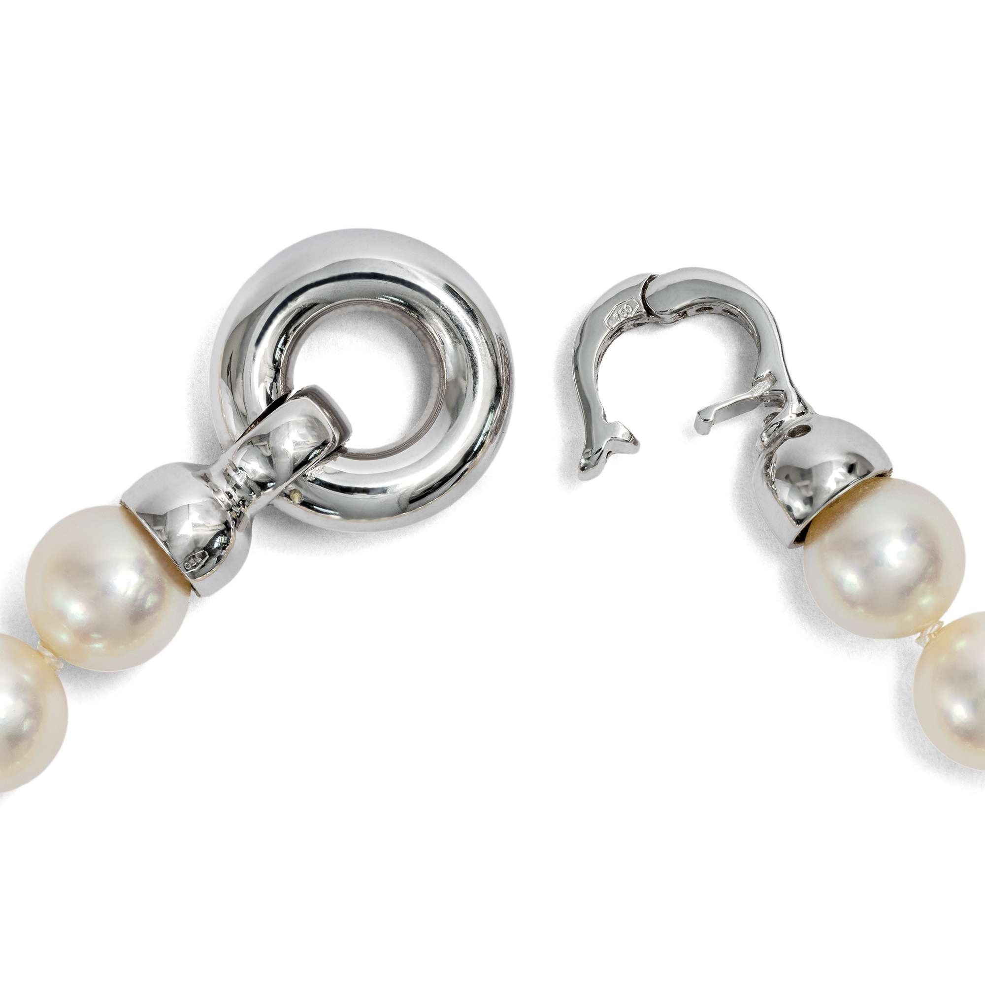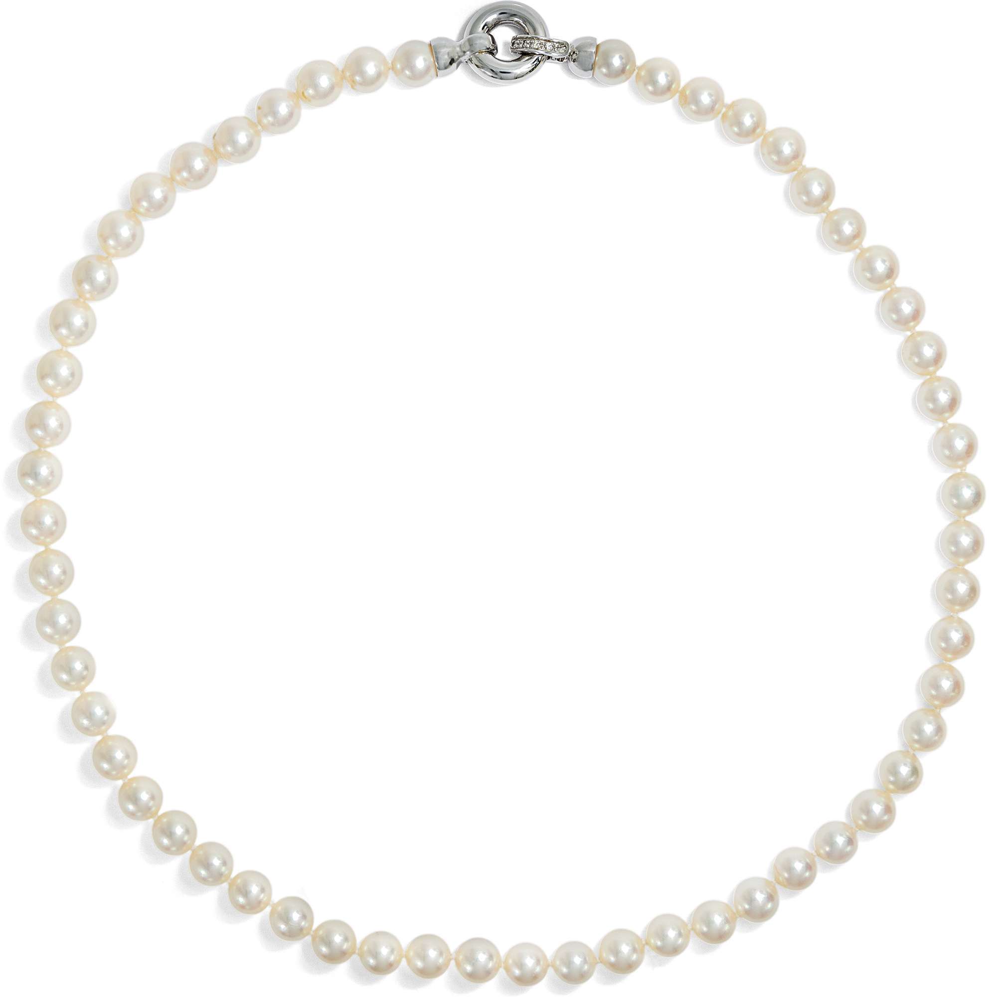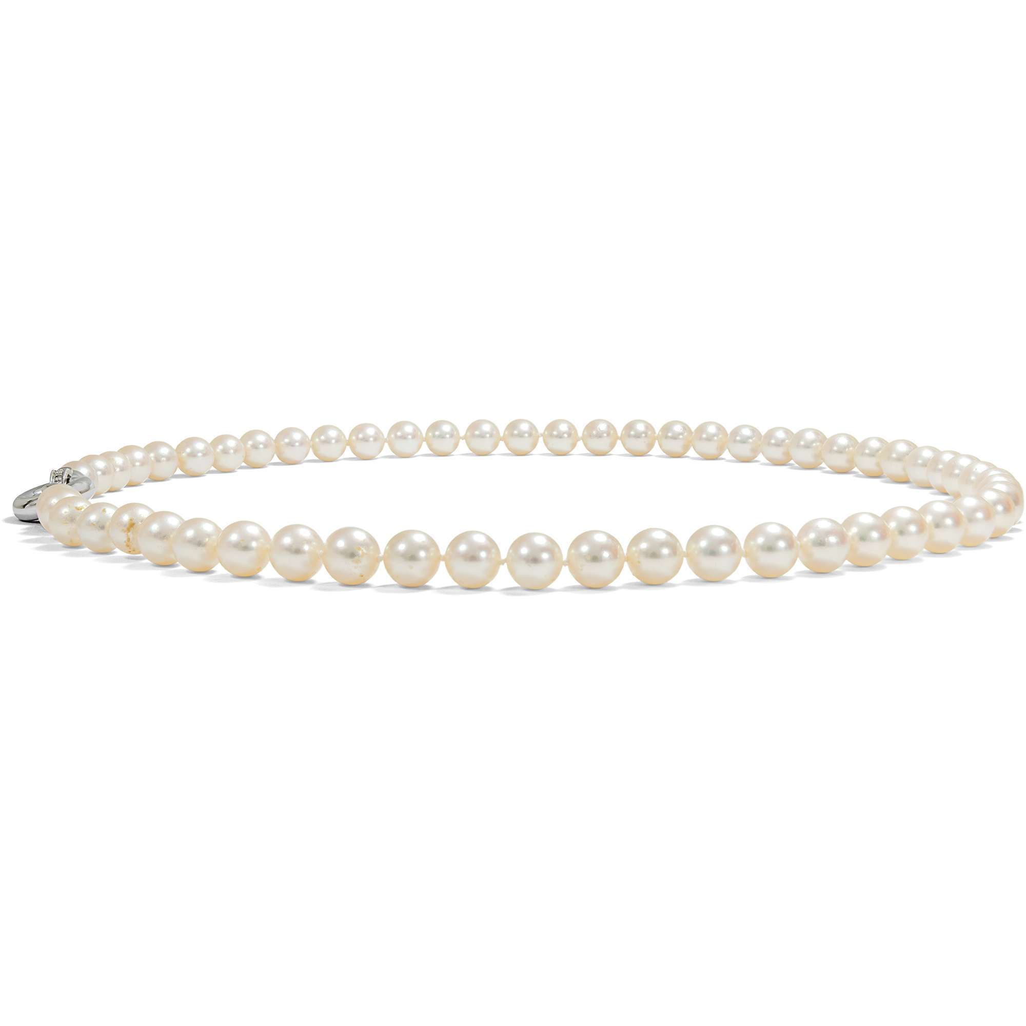 Qualitätvolle Akoya-Perlenkette mit Diamantschließe, Italien um 1995