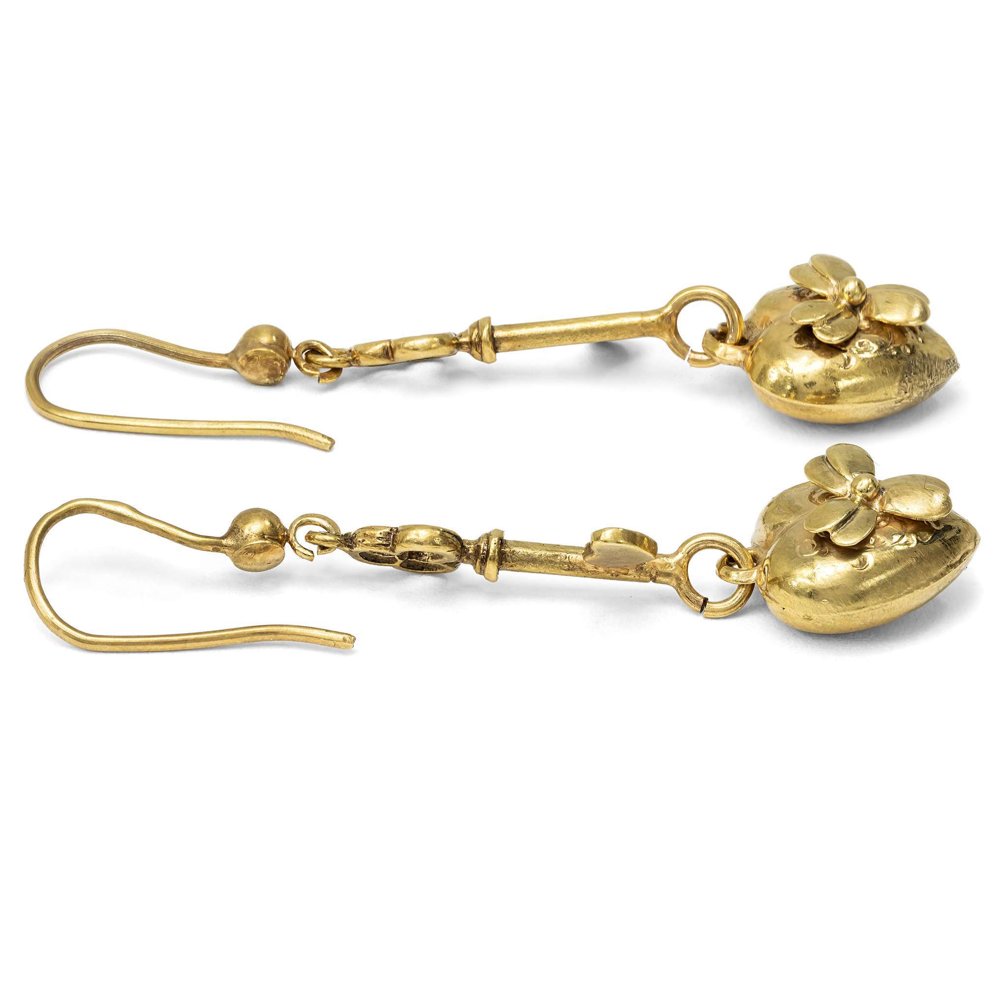 Herzen, Liebesknoten, Schleifen und Blüten bilden den Grundstock der Formenwelt viktorianischen Schmucks. So zeigt auch das vorliegende Paar Ohrhänger ein ganzes Kompendium romantischer Symbole.