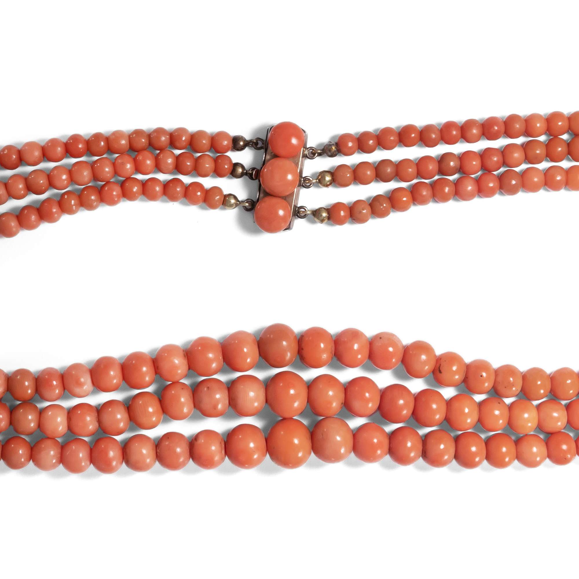 Dreireihiges Verlaufscollier aus großen Lachskorallen, Italien um 1890