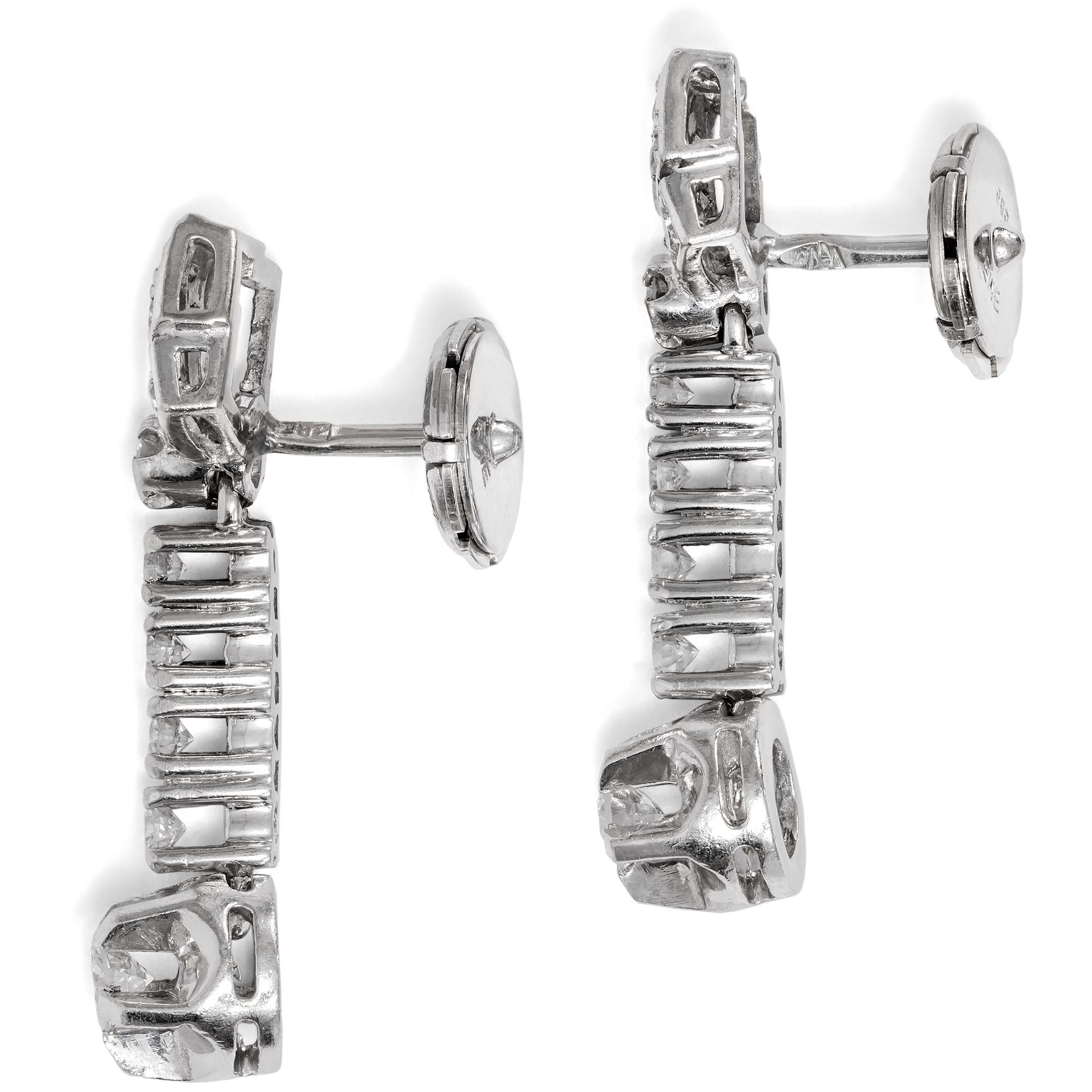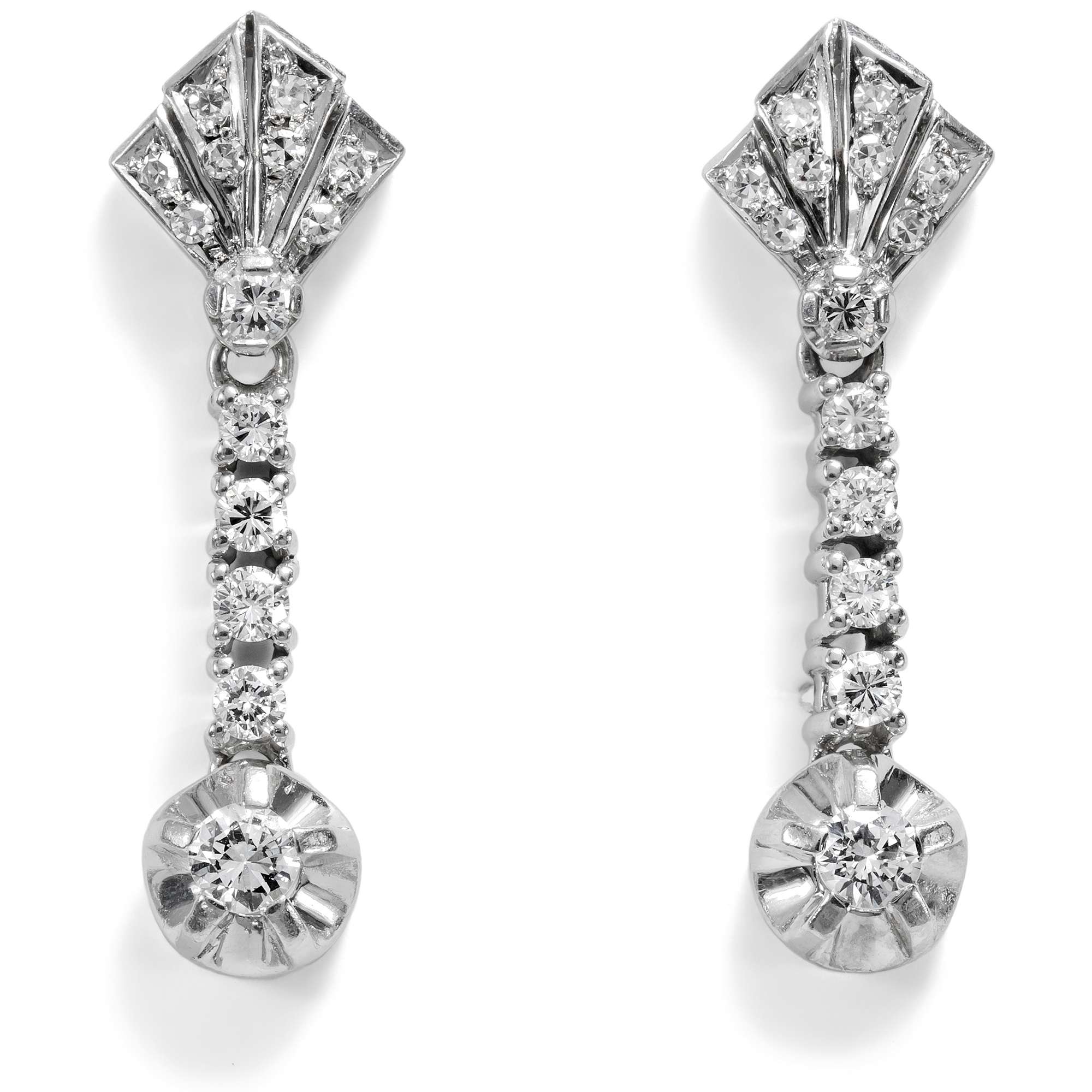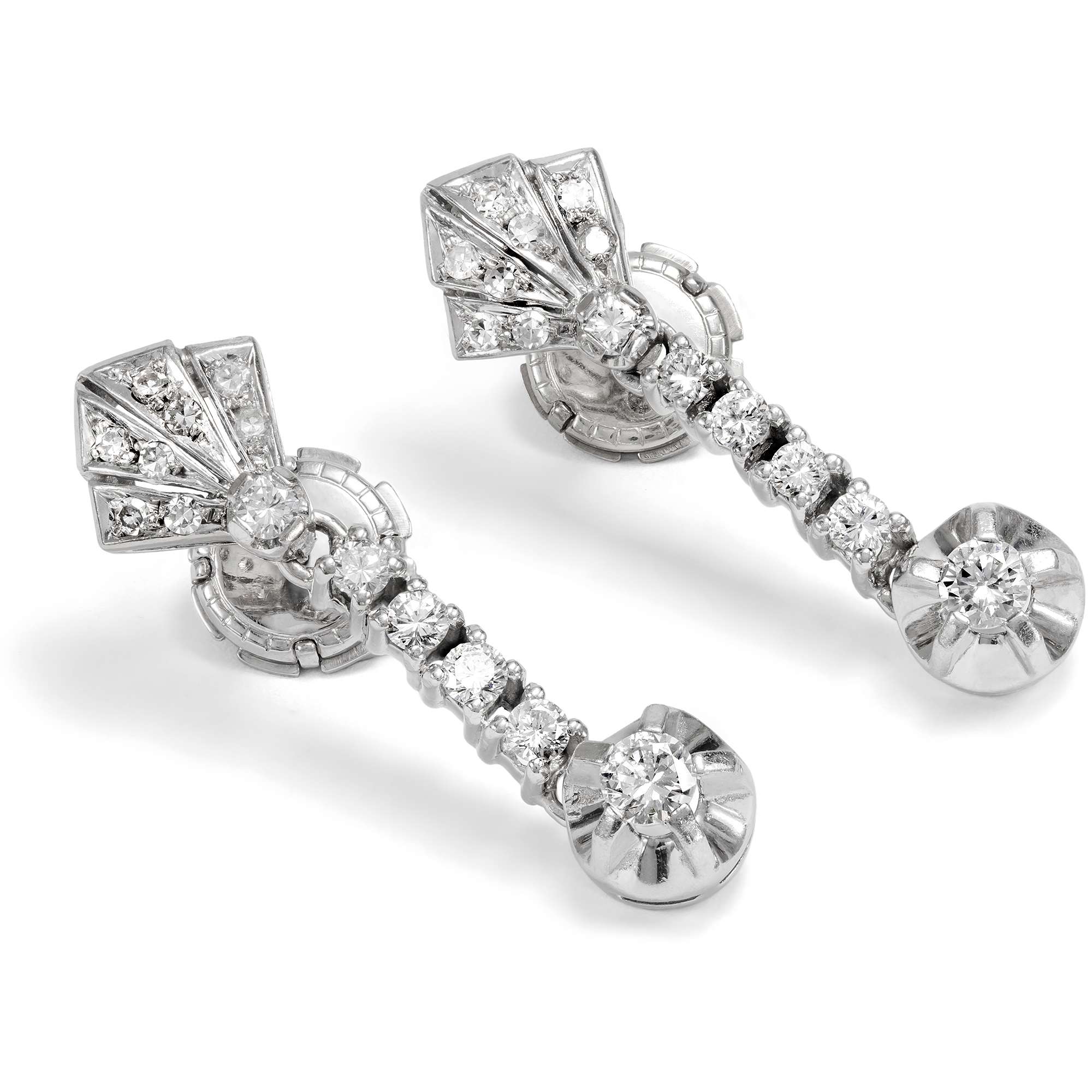 Glamouröse Midcentury Ohrhänger mit Diamanten in Weißgold, um 1955