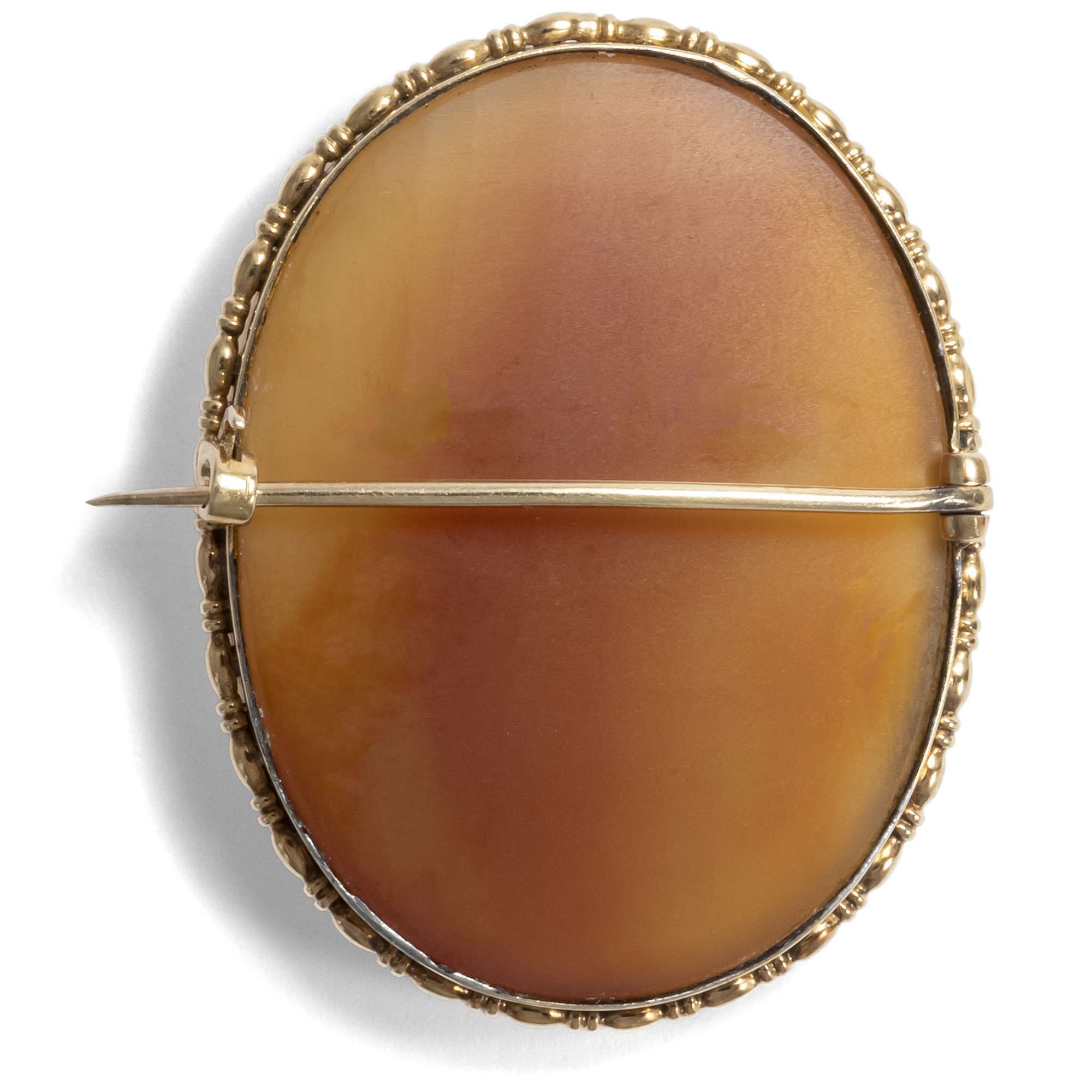 | Material: | Eine Kamee aus Lagenstein-Achat, 3,1 x 4,1 cm Gold 585/000, entspricht 14 Karat |