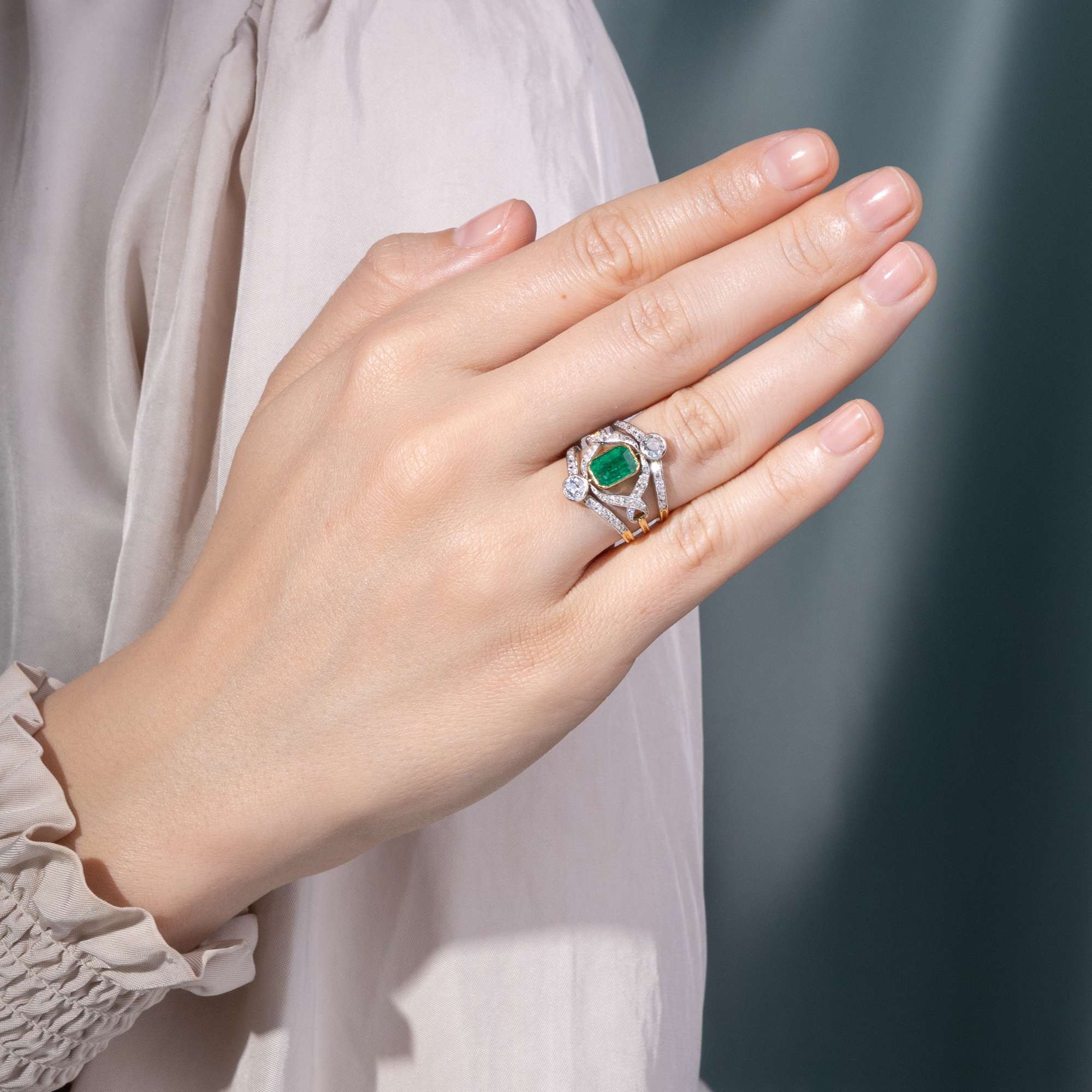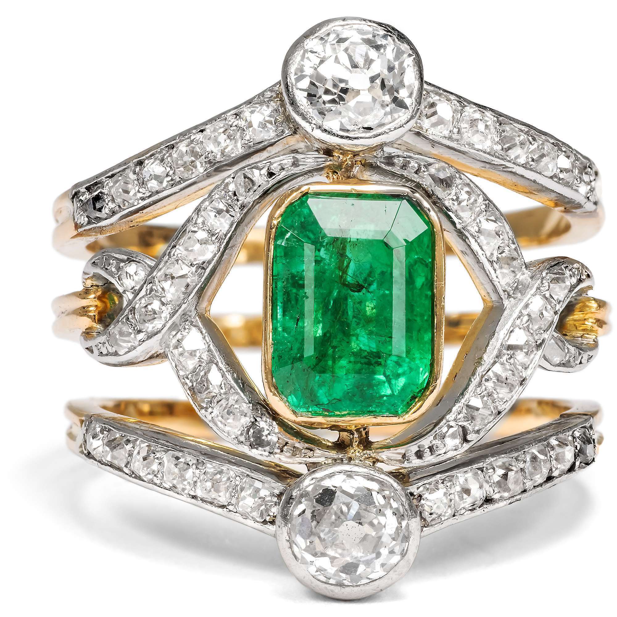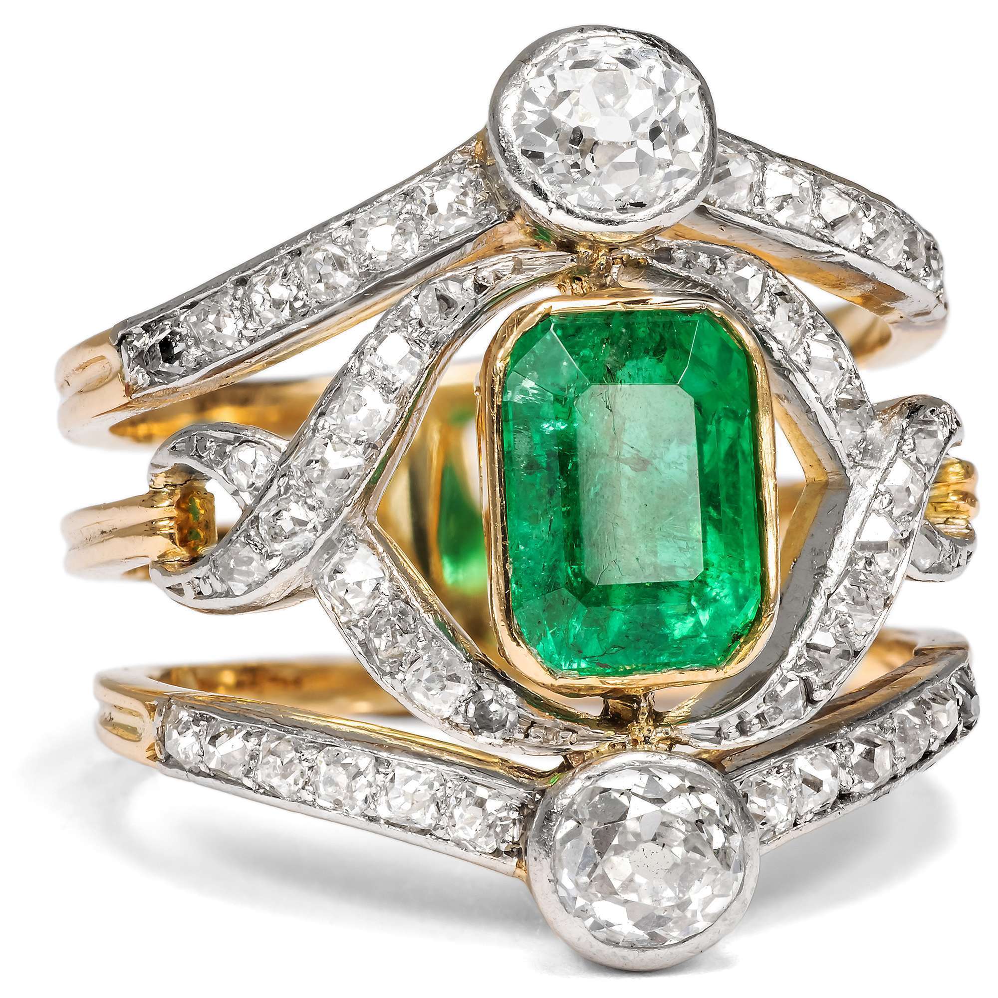 Prachtvoller Ring mit kolumbianischem Smaragd & Diamanten, um 1905