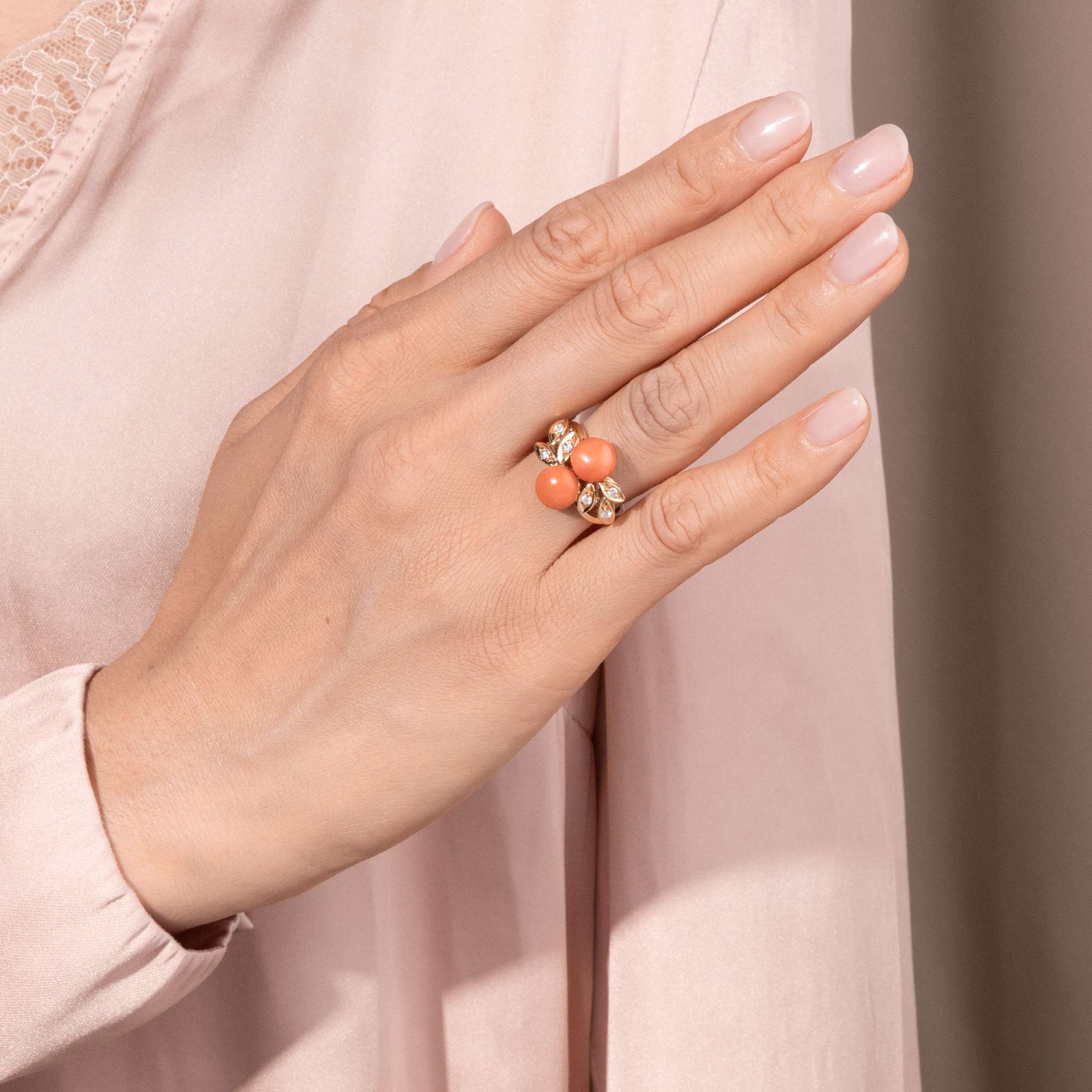 Schöner Vintage Ring aus Gold mit Diamanten & Korallen, Italien um 1985