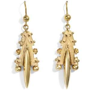 Ohrringe sind im Bereich des antiken Schmucks die am schwierigsten zu findenden Stücke. Zu oft hat der Lauf der Zeit die Paare auseinander gerissen und es ging eines der beiden Stücke verloren. Unsere Goldschmiede haben daher aus unserer Sammlung historischer Edelsteine sechzehn Diamanten und zwei Saphire ausgesucht und zu diesen Ohrsteckern zusammengestellt.
