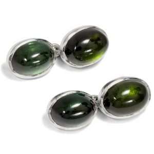 Die ovalen Fronten sind mit Streifen und feiner Guilloche-Arbeit graviert , die ein dekoratives Wellenmuster darstellen, das beinahe wie gewebter Stoff erscheint. Jeweils eine kurze Ankerkette verbindet die vier gleichartig gestalteten Schauseiten der Knöpfe miteinander. Diese Art der Gestaltung war von den 1910er- bis in die frühen 1940er-Jahre für Manschettenknöpfe sehr populär und findet sich in zahllosen Varianten in den Schmuckkatalogen der Zeit.